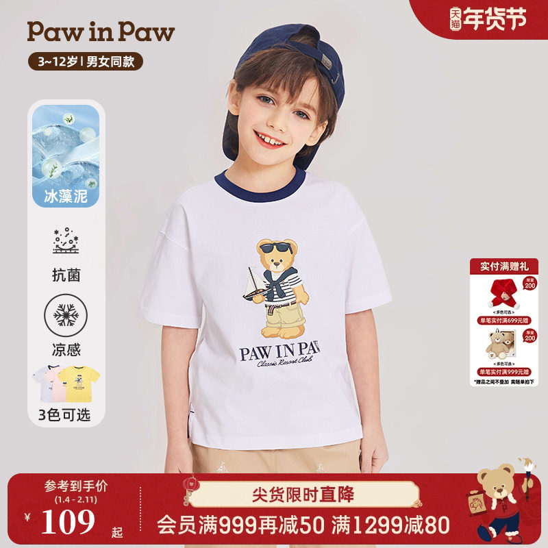 【冰藻泥】PawinPaw卡通小熊童装夏季男女童印花凉感短袖T恤