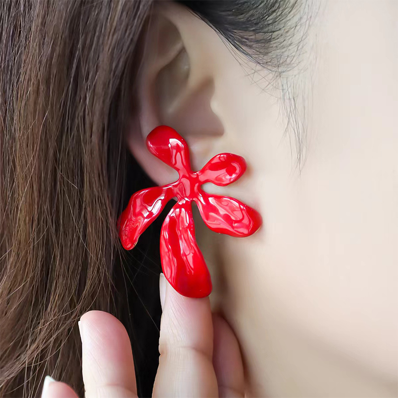 大号花朵耳钉甜美小众个性简约耳饰百搭红色耳钉大气高级感时尚饰