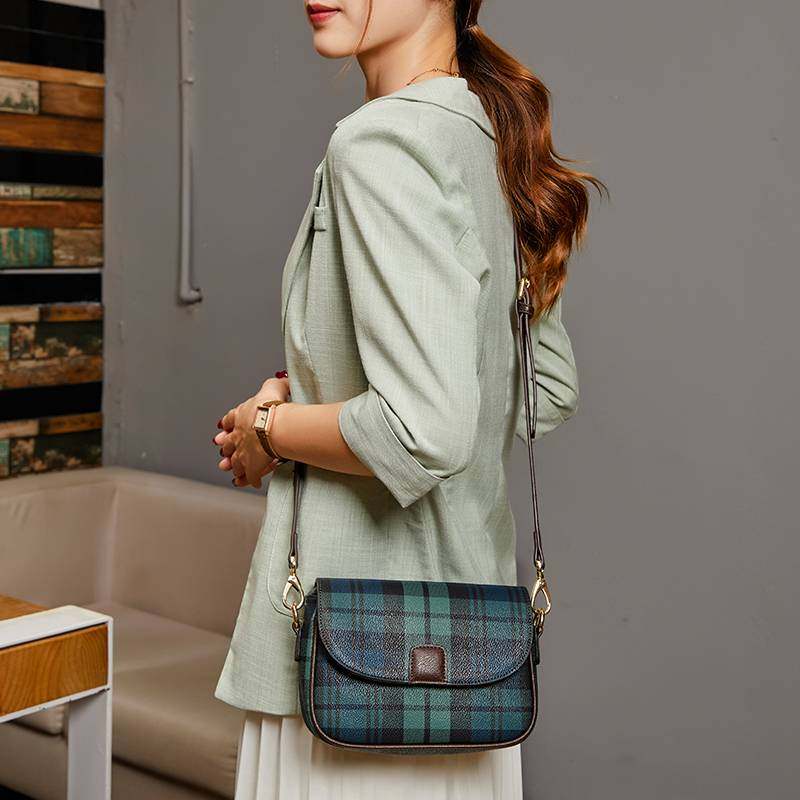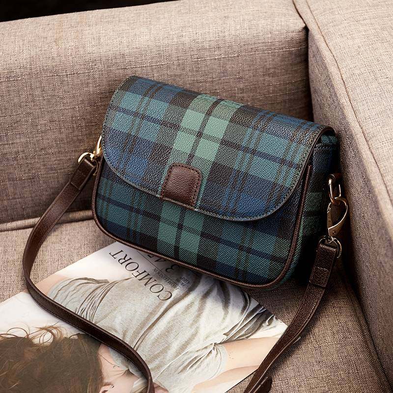 爱马女仕女包新款潮时尚格子小方包休闲包盖式斜挎包手机单肩包