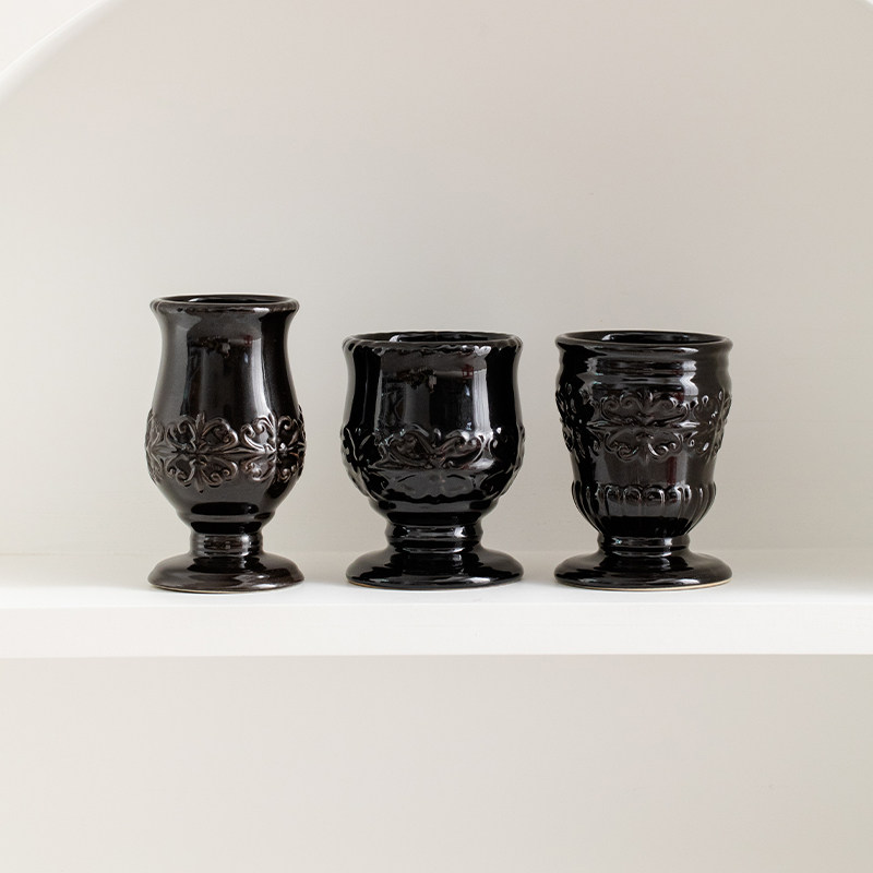 简约现代中古小众玻璃花瓶黑色水养鲜花客厅创意高级装饰插花摆件