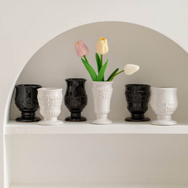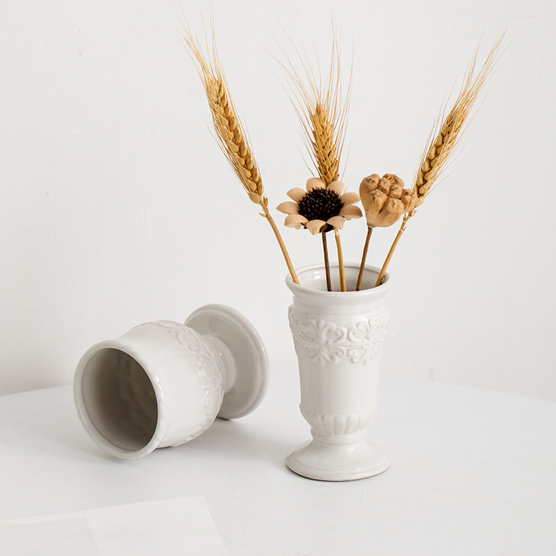 复古浮雕北欧陶瓷花瓶装饰干花客厅电视柜餐桌大口径水培插花摆件