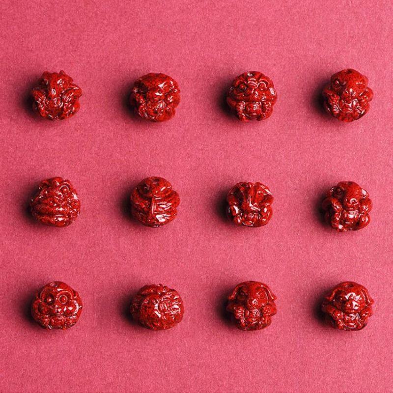 VZZS原矿晶体砂十二生肖配件 朱砂生肖三合六合配珠diy手工饰品