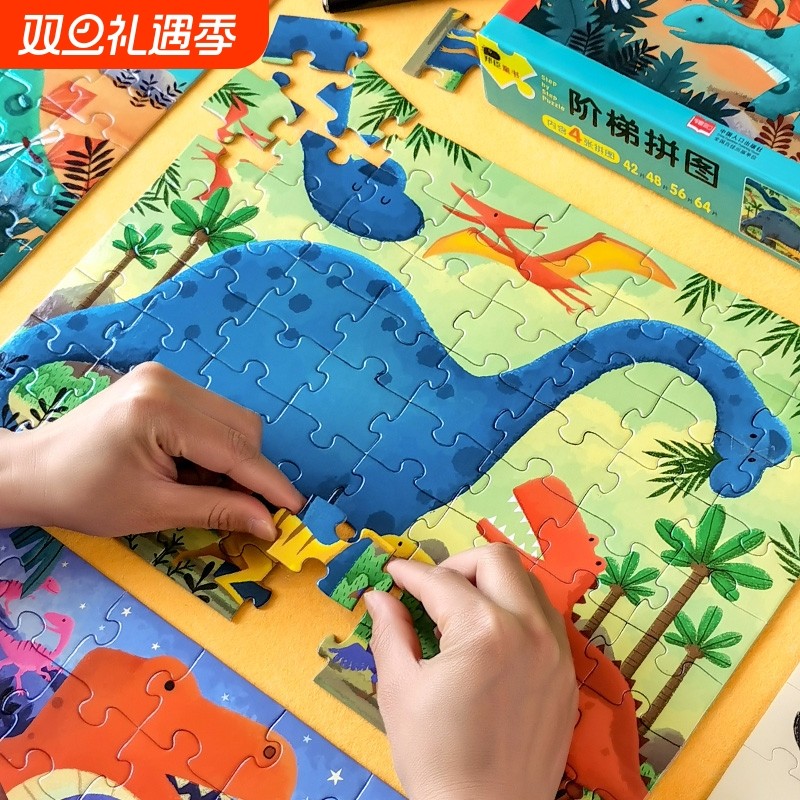 儿童进阶拼图阶梯大块宝宝幼儿男孩女孩拼板益智玩具手工恐龙立体