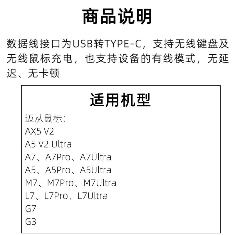适用迈从AX5V2 M7Pro A7Pro G3 g7pro A5v2 A5ultra无线鼠标充电线type c数据线电脑USB连接线加长8K传输线