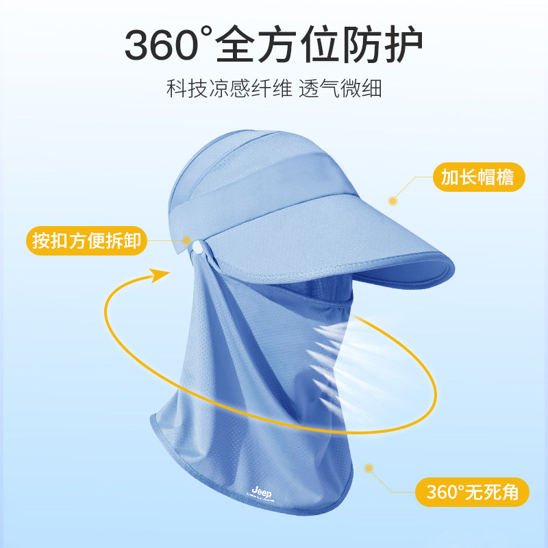 jeep吉普遮阳帽子女夏季女士遮脸面罩防晒户外透气防紫外线太阳帽
