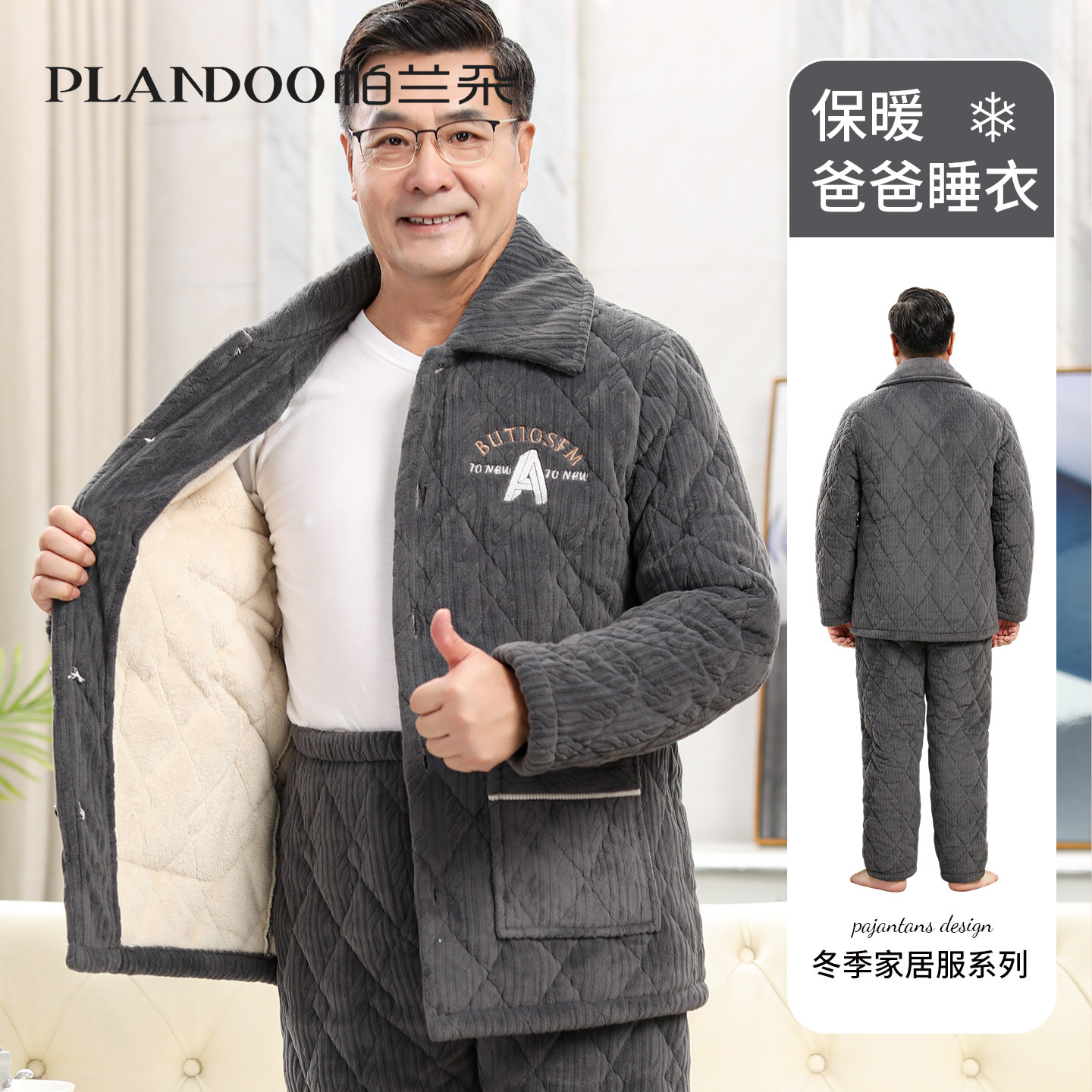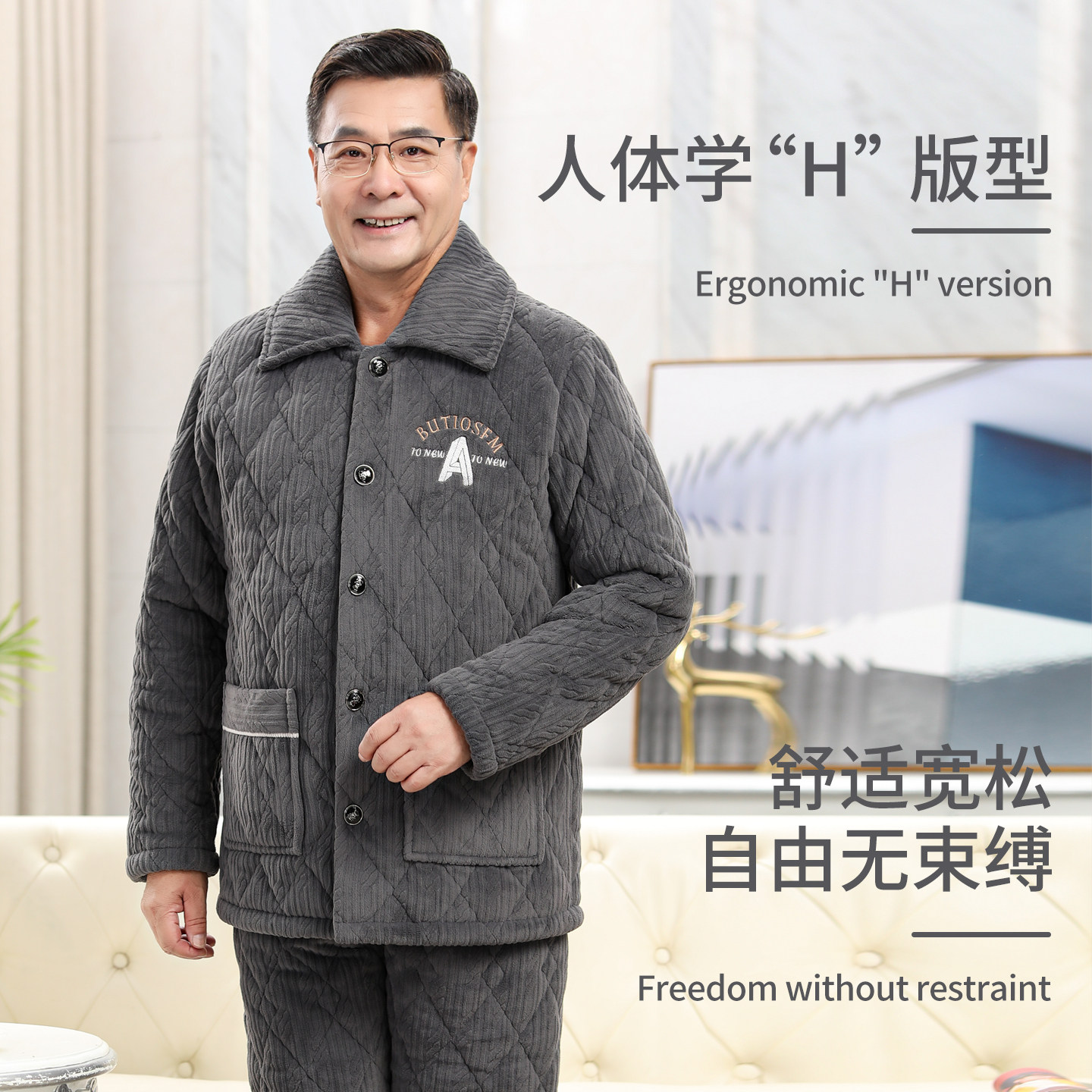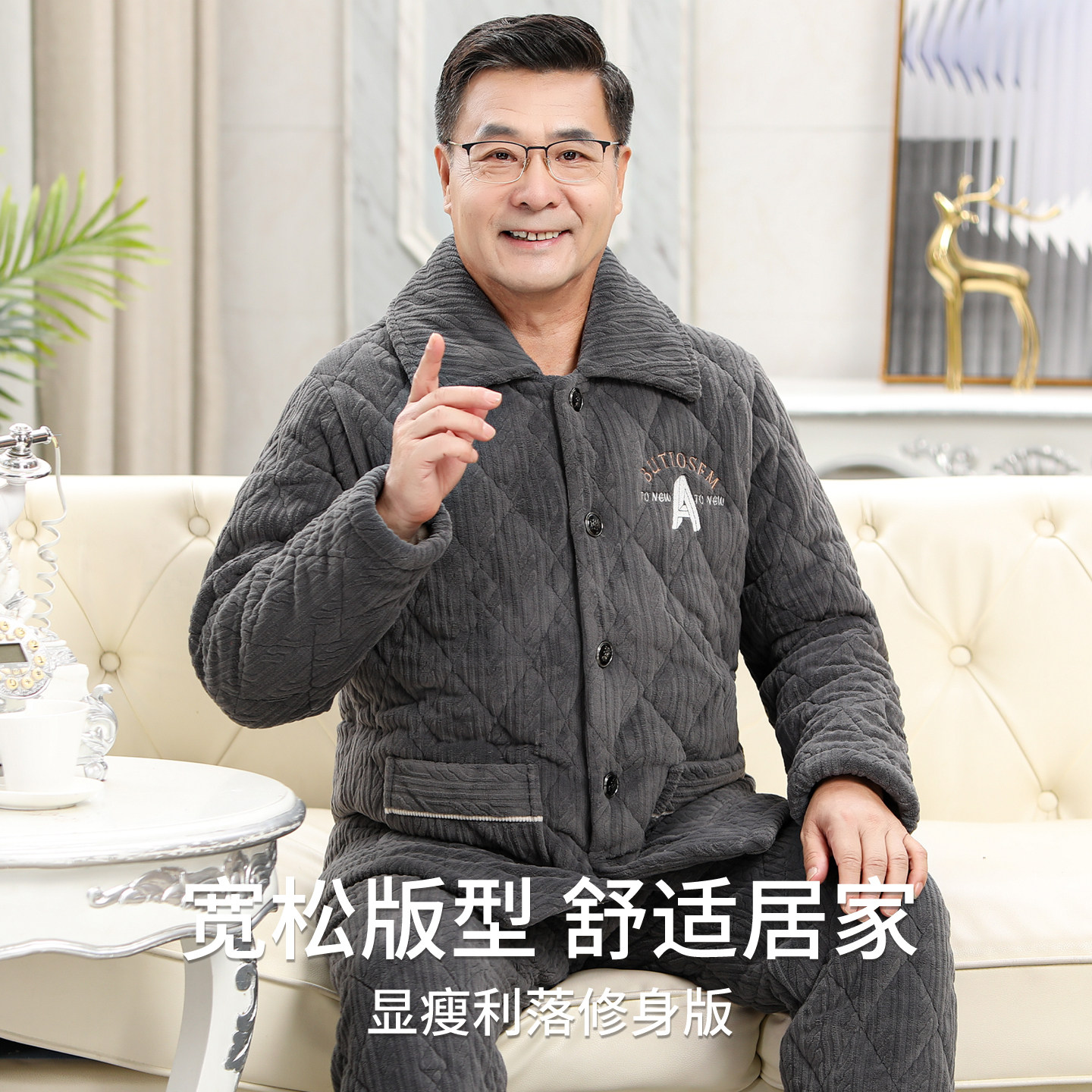 睡衣男款三层夹棉加绒加厚冬季新款中老年男士可外穿送爸爸家居服