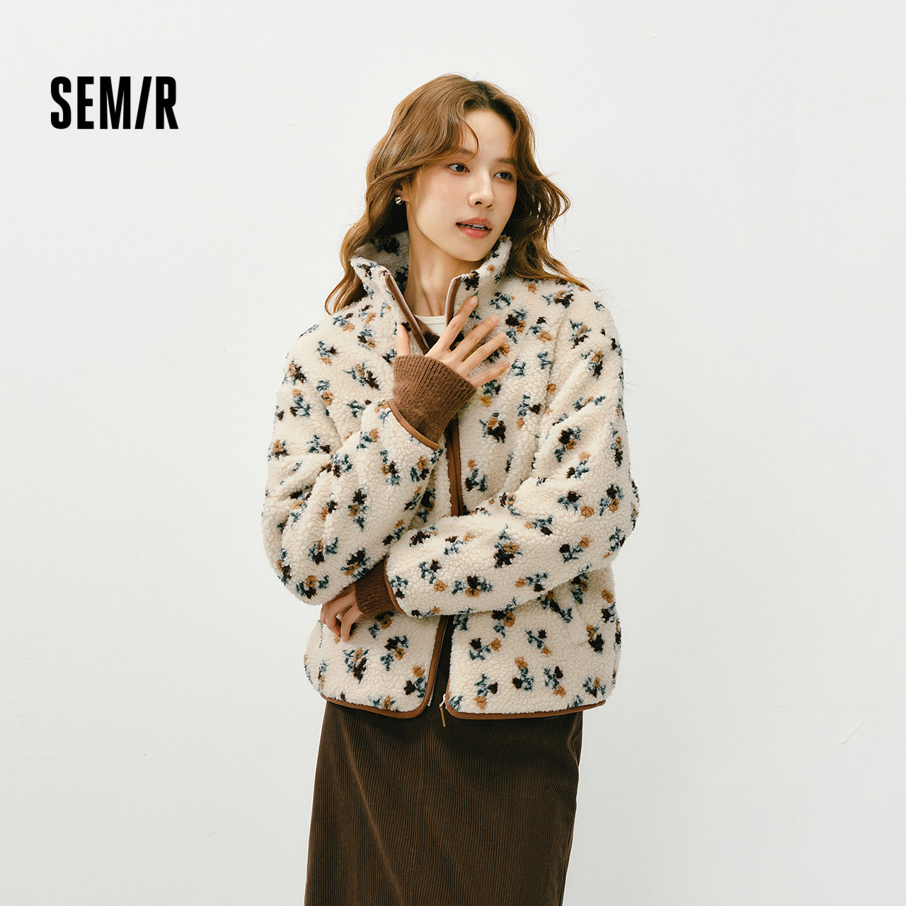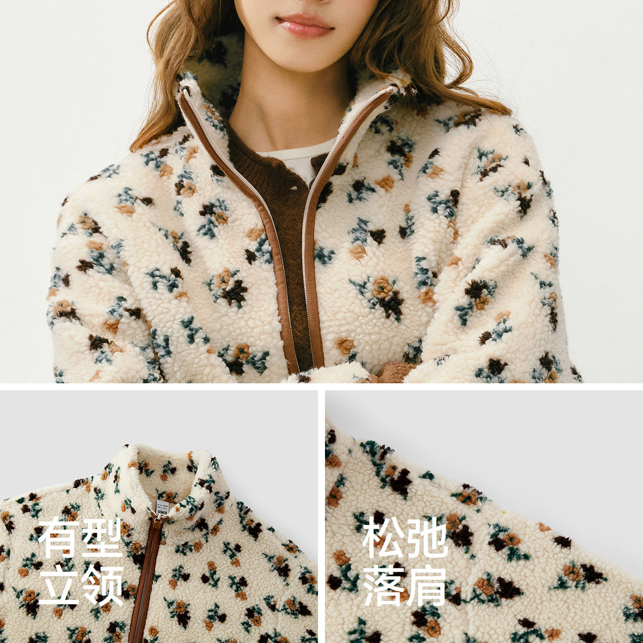 森马外套女冬季仿羊羔毛摇粒绒上衣宽松图案2025新款时尚复古夹克