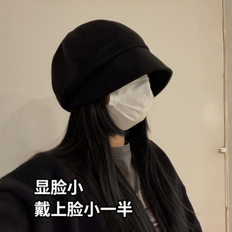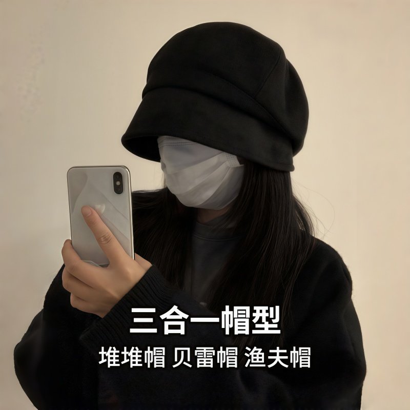 网红素颜遮脸渔夫帽子女秋冬高气质百搭显脸小堆堆帽大头围贝雷帽