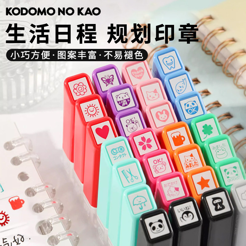 日本KODOMO NO KAO童颜浸透迷你印章手账工具DIY手账本日程贴纸装饰素材可爱卡通单枚图章便携式可补充墨水型