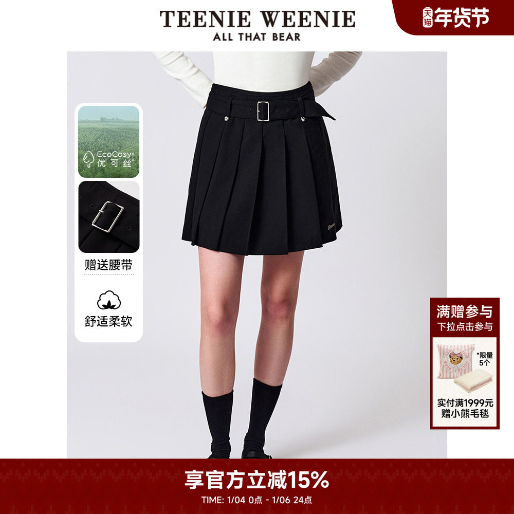 TeenieWeenie小熊奥莱优可丝舒适学院风百褶裙A字短裙黑色