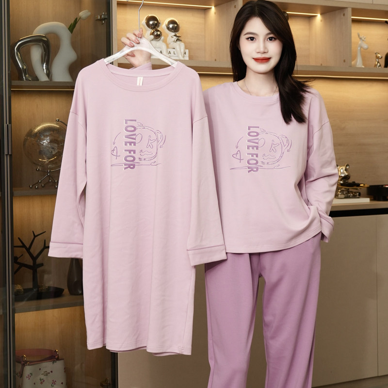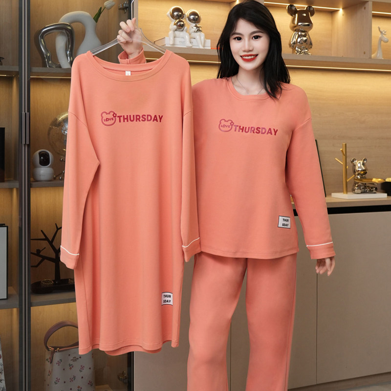 睡衣女款2025新款春秋季长袖针织显瘦睡裙套装春秋款三件套家居服