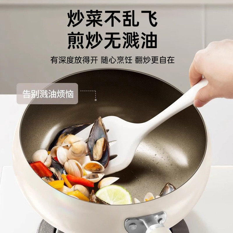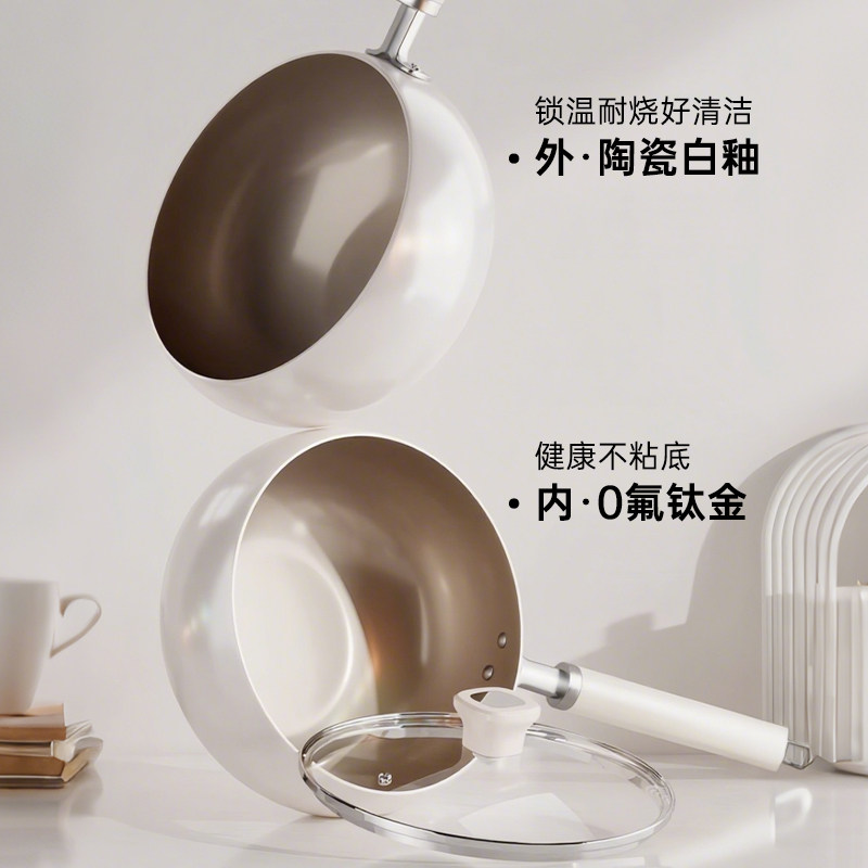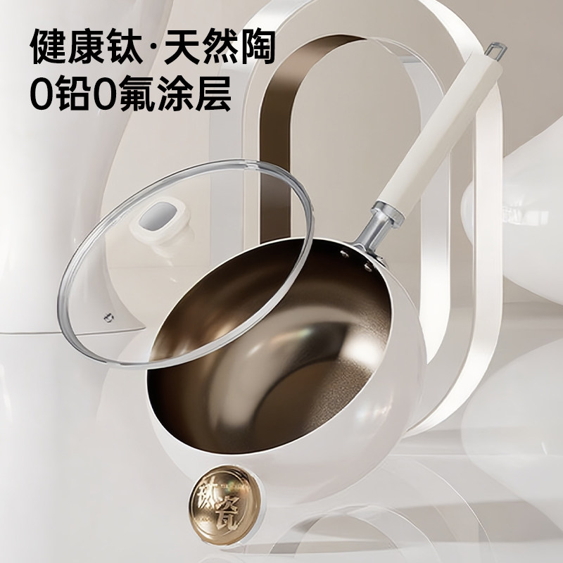 钛陶瓷大肚锅炒锅家用无涂层平底不粘锅燃气电磁炉专用不沾炒菜锅
