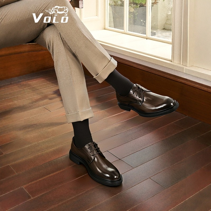 VOLO/犀牛休闲皮鞋男款2025新款全黑公务鞋商务皮鞋内增高德比鞋