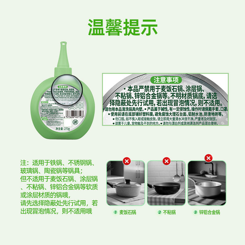 水卫士锅底黑垢清洁剂除黑垢油渍锅底家用厨房神器除锈强力去垢