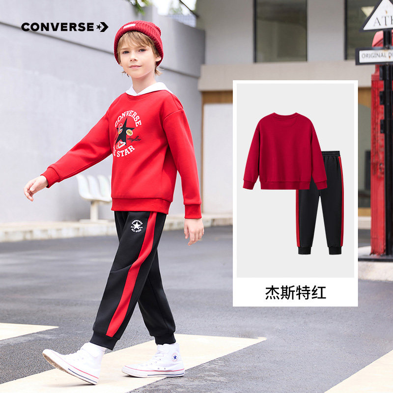 【加绒】匡威童装女童套装2025冬季新款男童上衣裤子学院风休闲