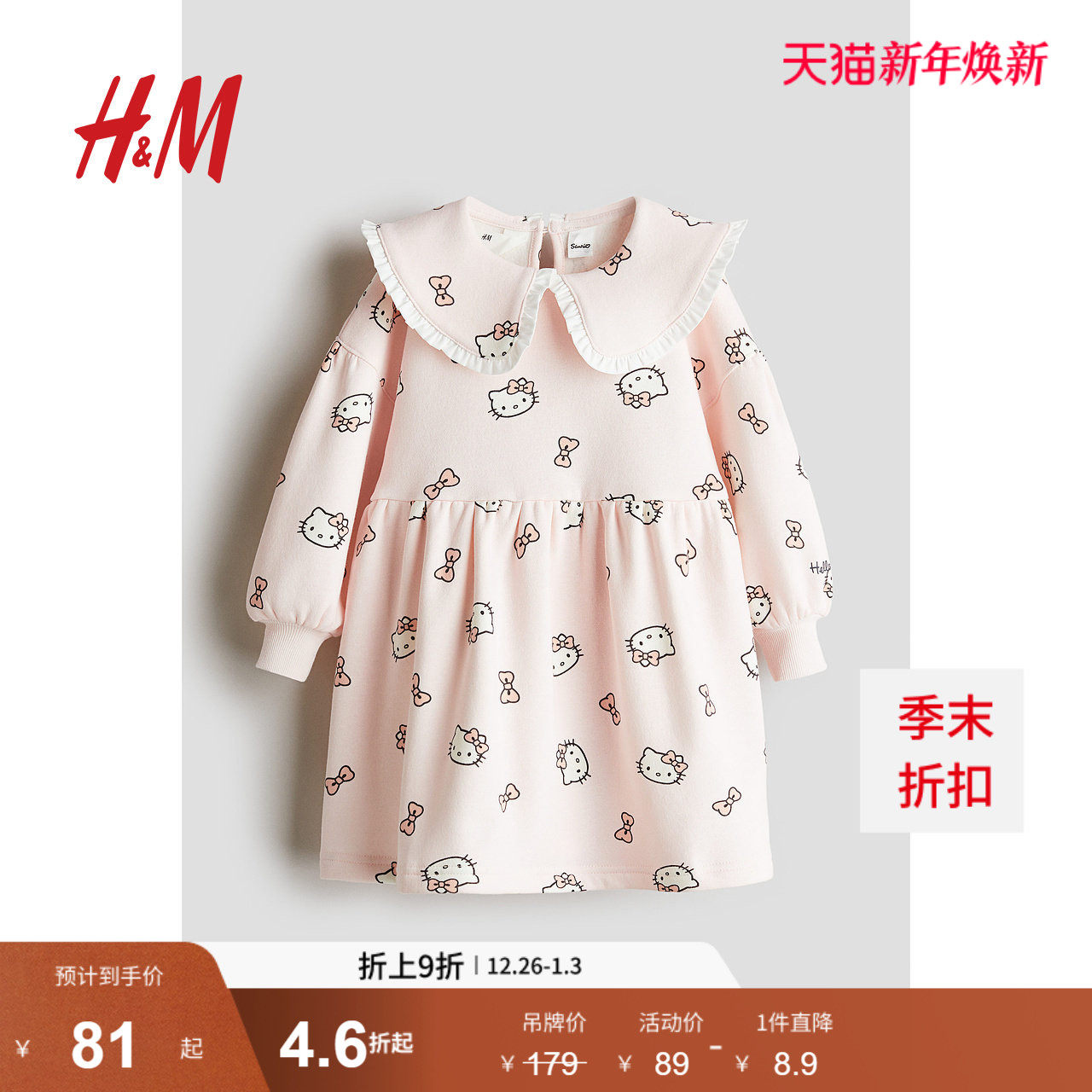 【三丽鸥系列】HM童装儿童女童裙子宽松卫衣蓬蓬公主裙1262174