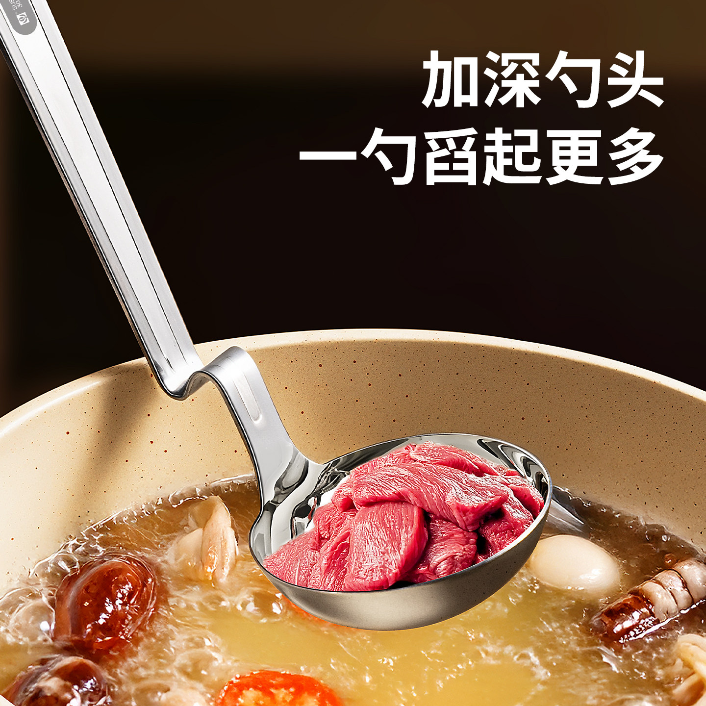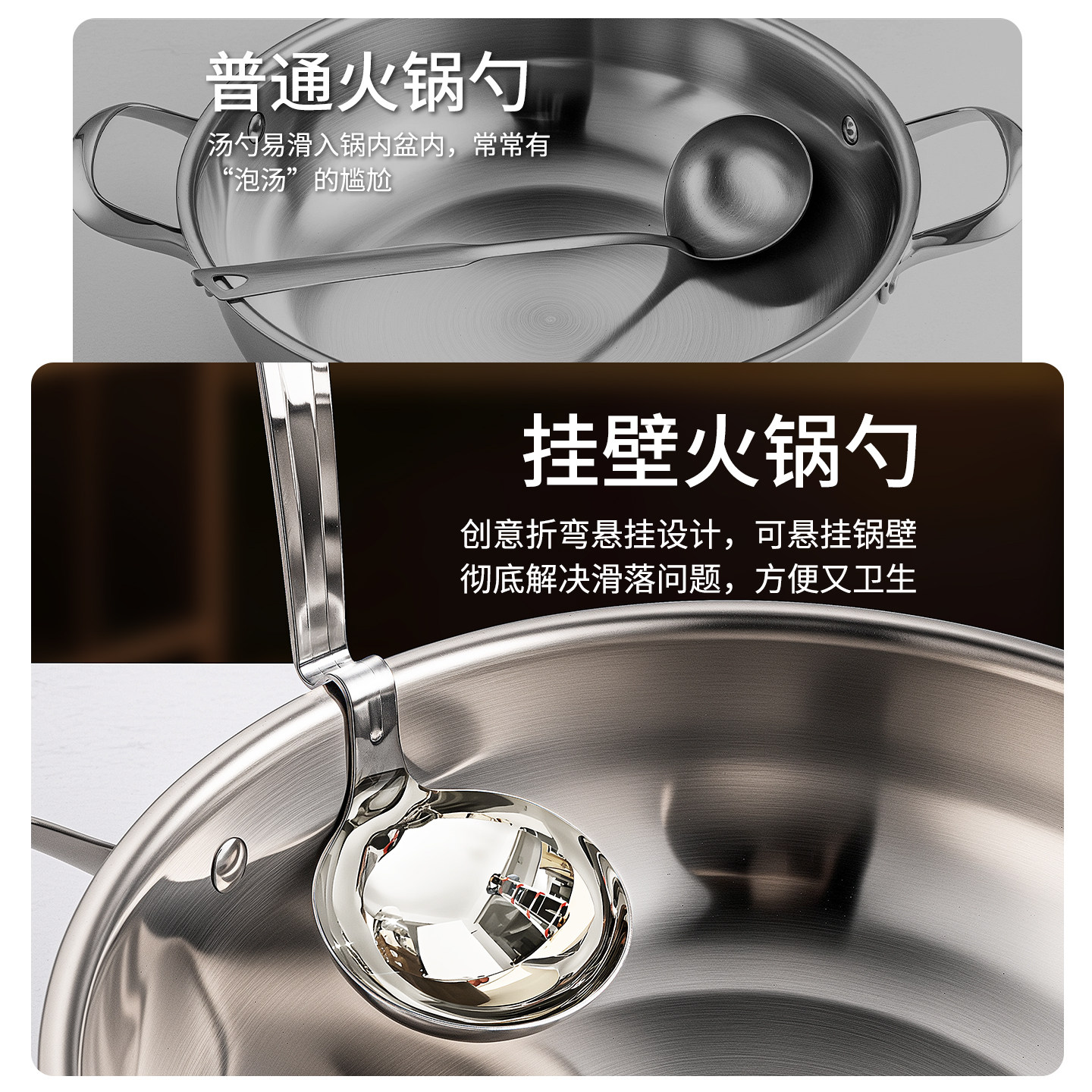 挂边火锅汤勺专用漏勺304不锈钢食品级长柄汤勺家用大号盛汤勺子
