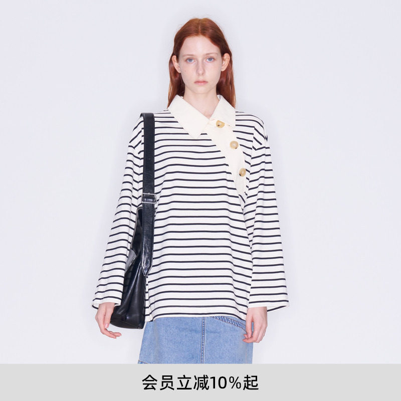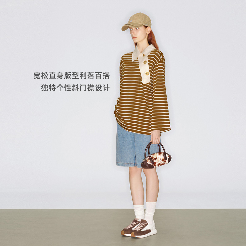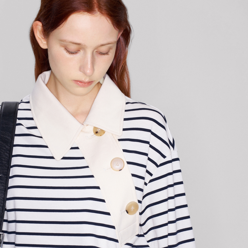 宽松直身斜门襟polo 精梳全棉时尚条纹布