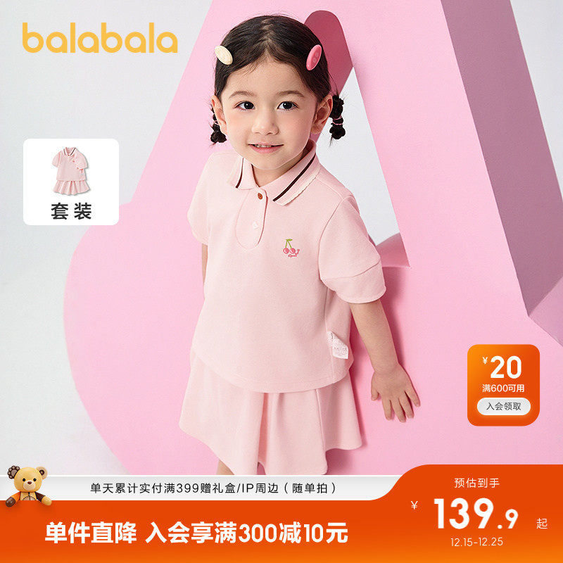 巴拉巴拉童装儿童短袖套装女童裙裤两件套2025夏新款时尚百搭洋气