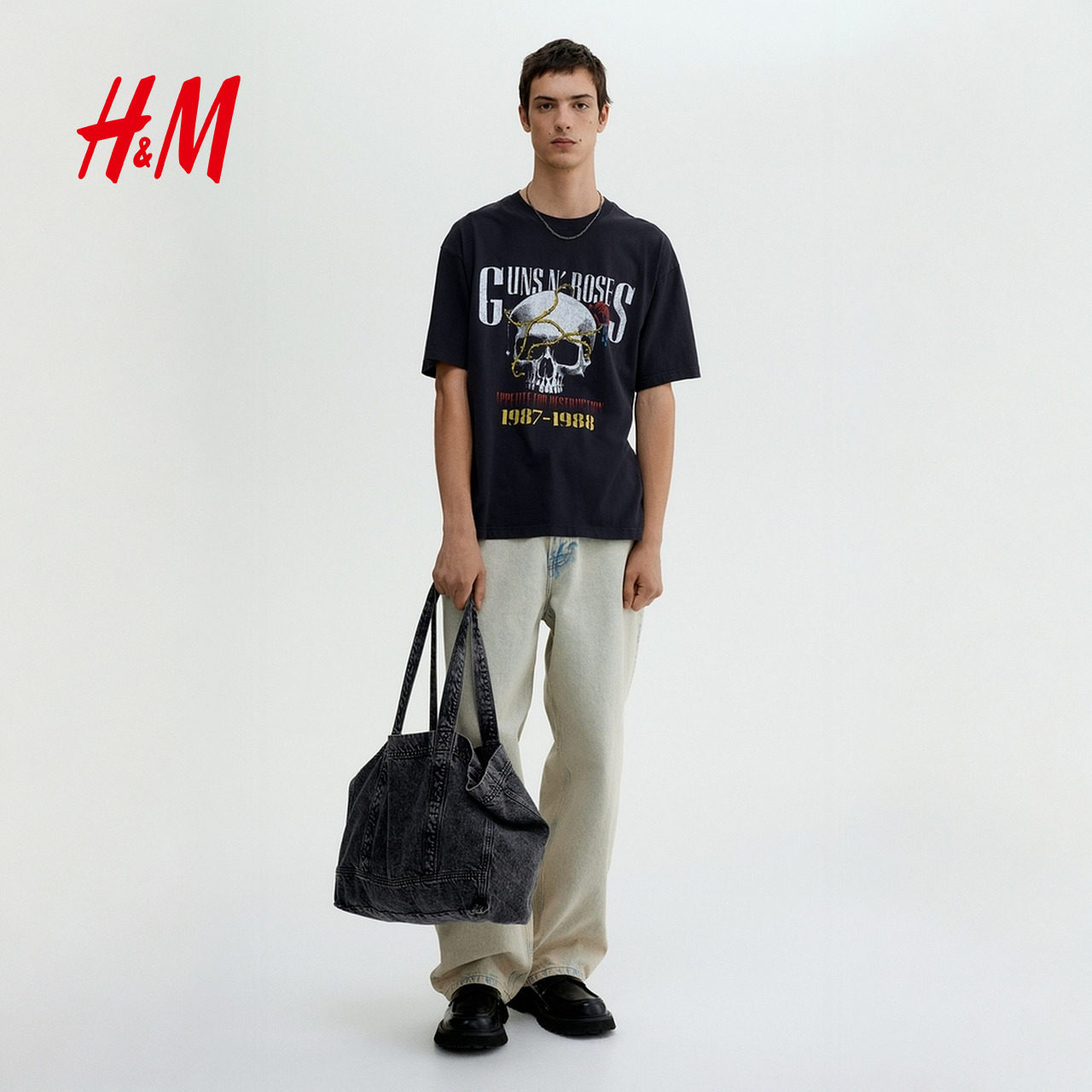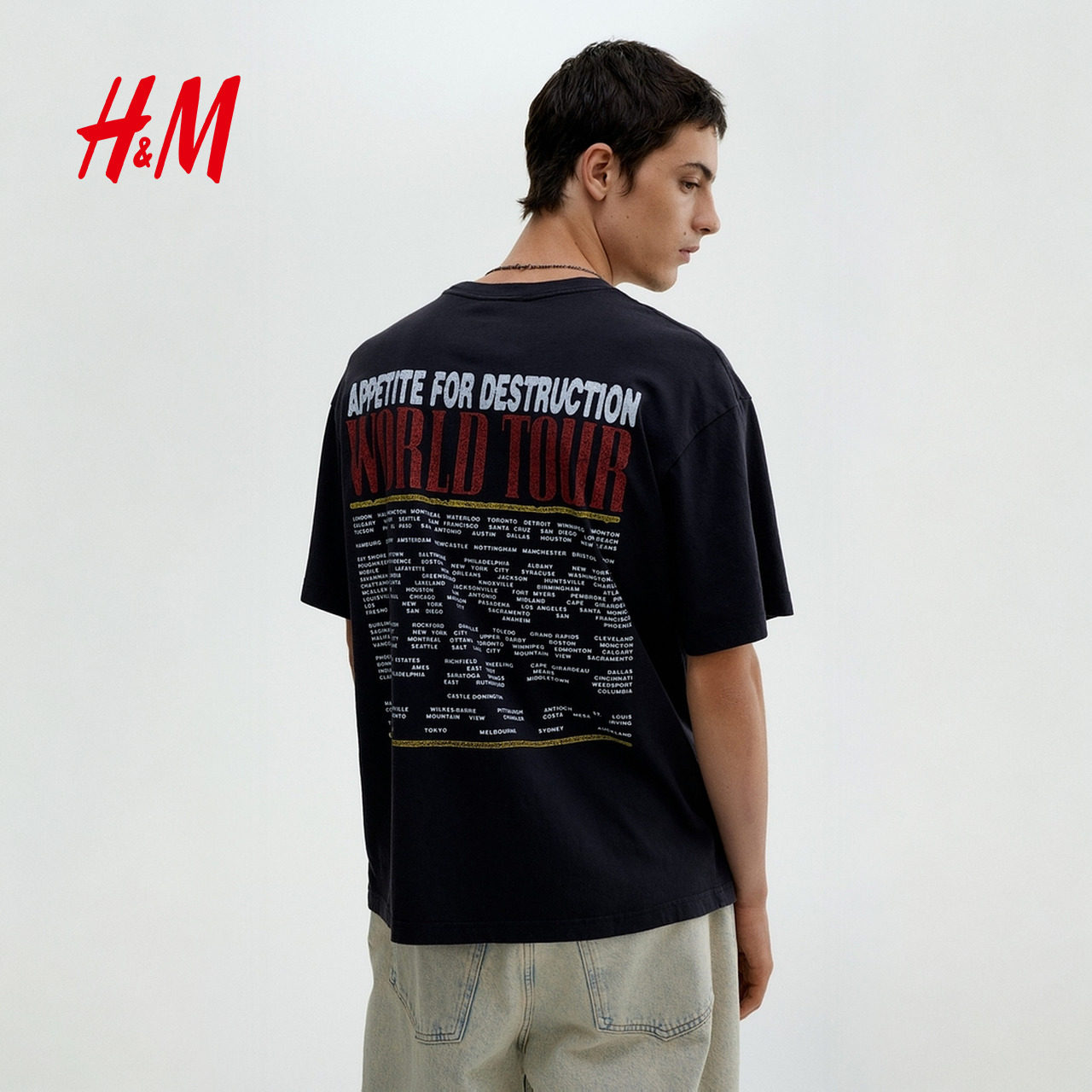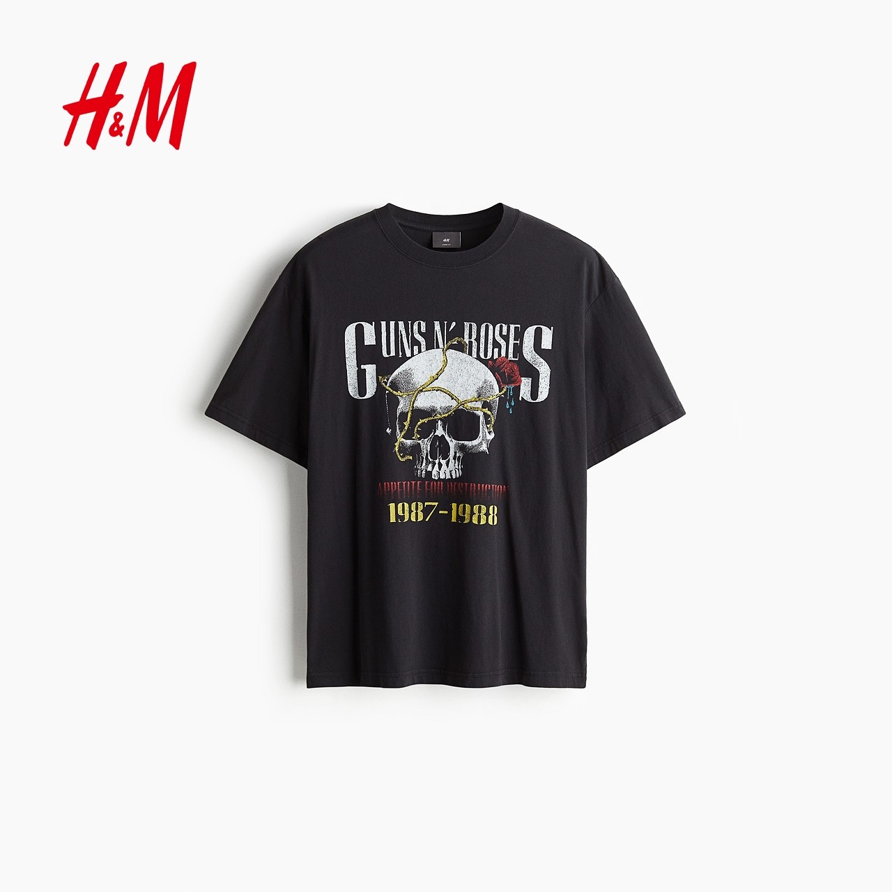 【枪炮与玫瑰乐队】HM男装女装T恤冬季印花情侣上衣打底衫1225609