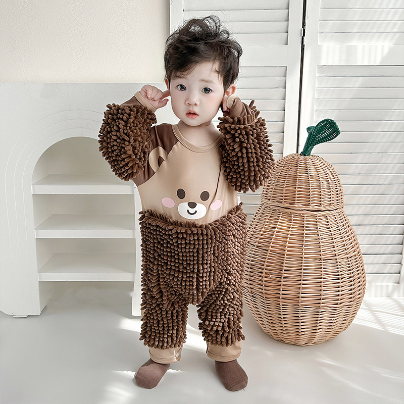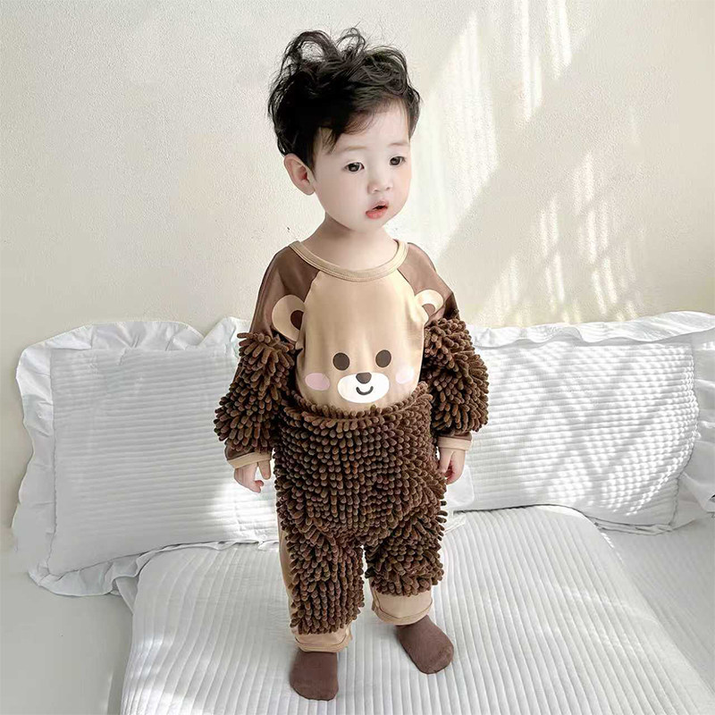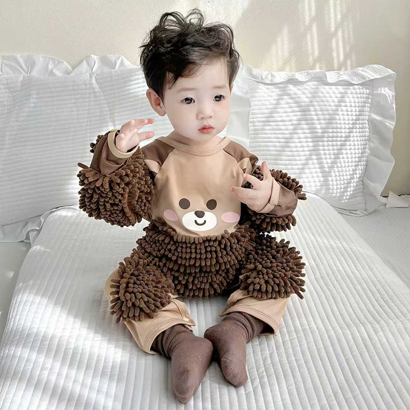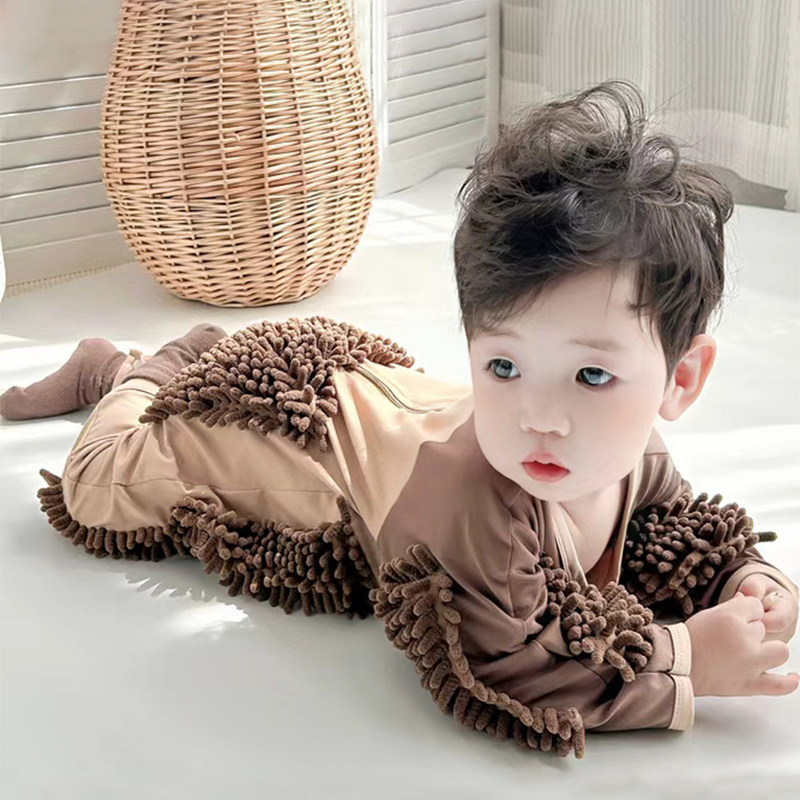 宝宝爬行服爬爬服秋冬超萌拖把婴幼儿拖地服防脏连体罩衣护膝户外
