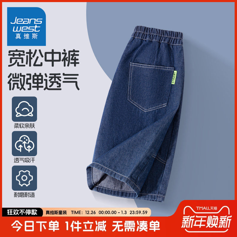 真维斯童装儿童夏季裤子男童帅气休闲五分裤男孩宽松薄款牛仔短裤