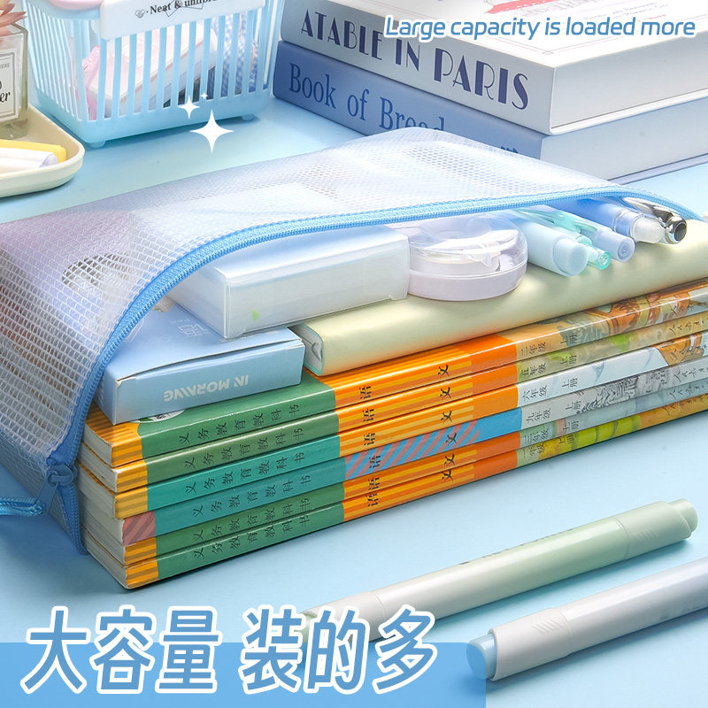 晨光文具学科科目分类袋小学生文件袋拉链式试卷收纳袋透明网纱双层大容量书袋作业资料a4考试专用袋票据产检