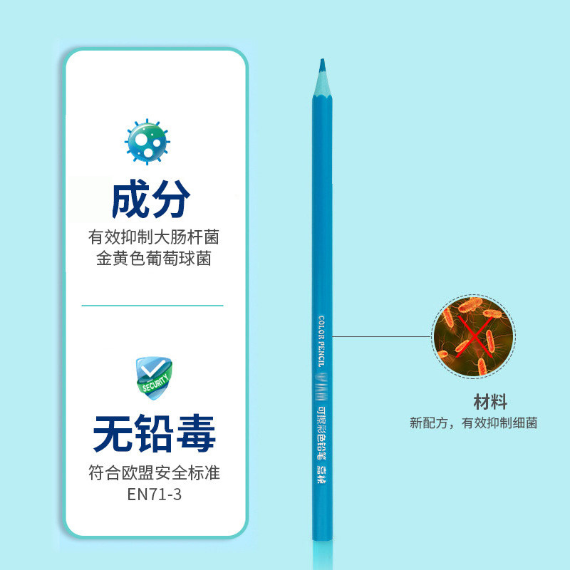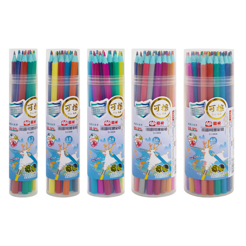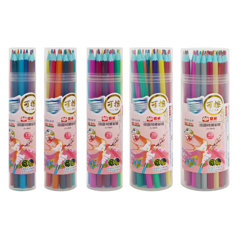 可擦彩色铅笔桶装小学生一年级画画专用初中美术生颜色笔儿童幼儿园绘画12/24/36/48色套装