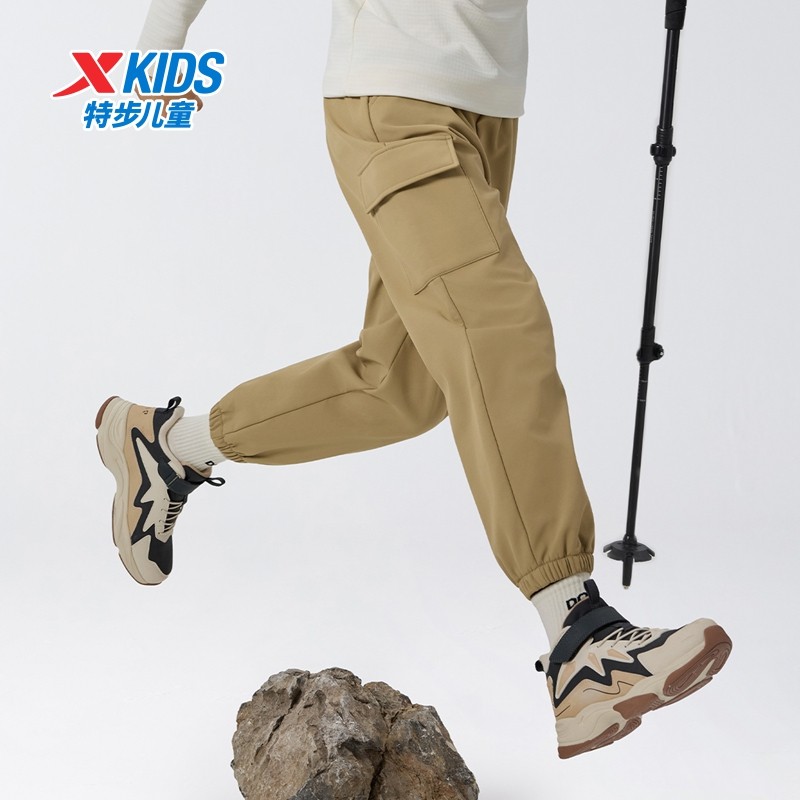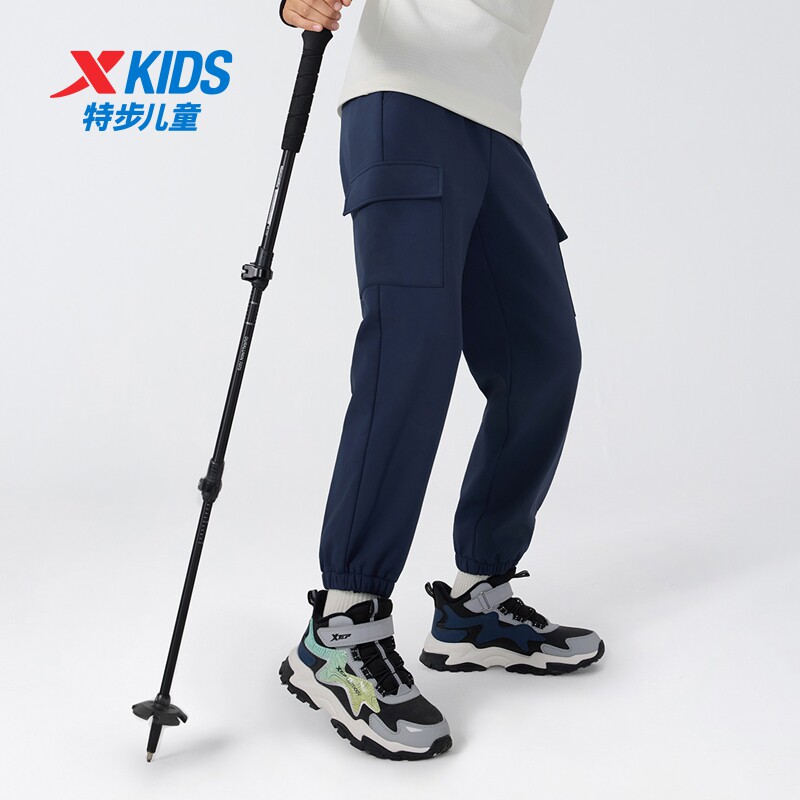特步童装儿童工装裤男童冬季新款中大童运动休闲三防梭织长裤加绒