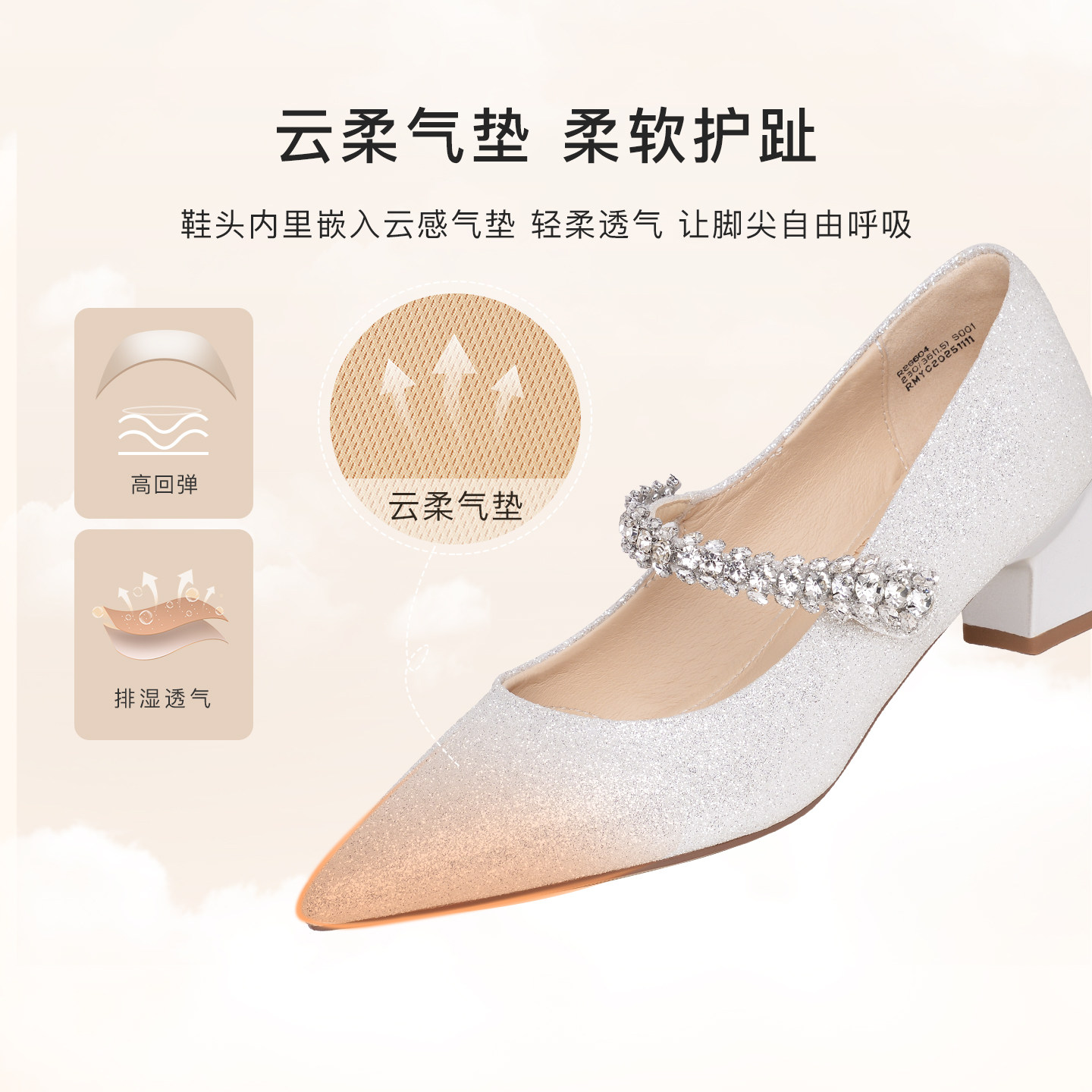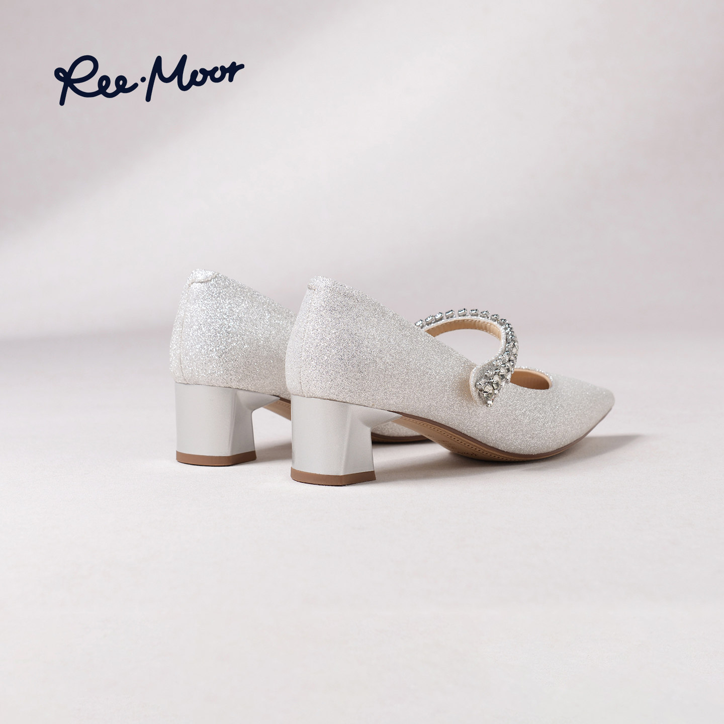 REEMOOR睿慕2026春季新款气质水钻玛丽珍鞋女低跟尖头浅口鞋单鞋