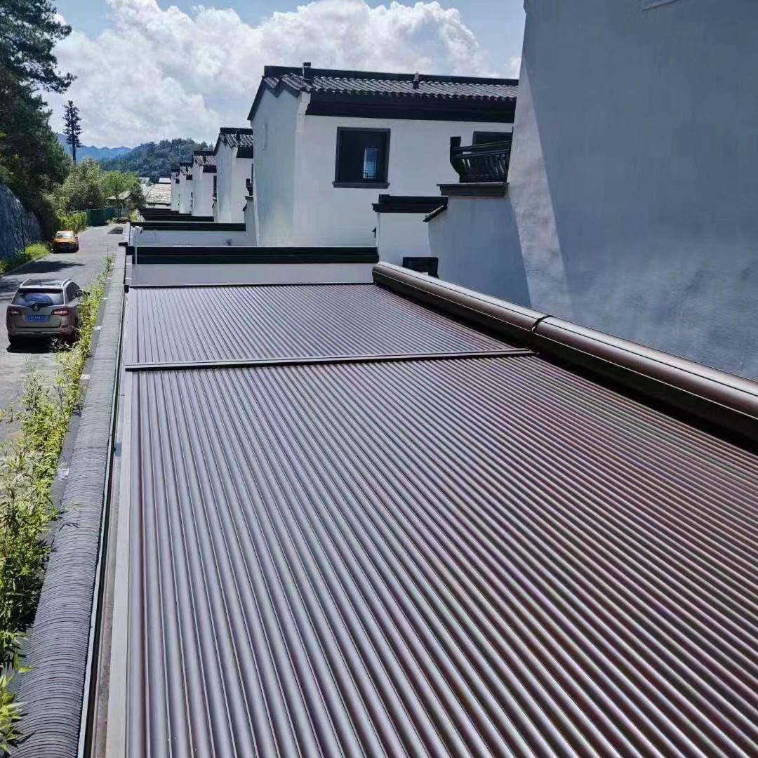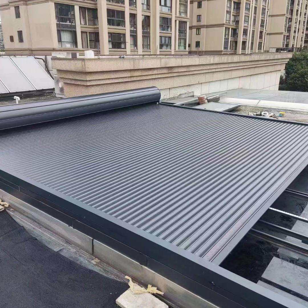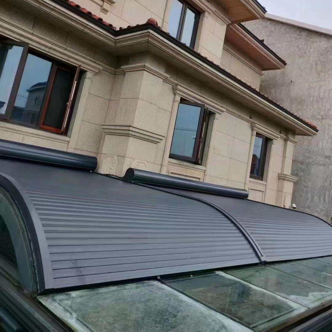 阳光房电动遮阳卷帘遥控伸缩顶帘户外玻璃房隔热防晒铝合金天幕