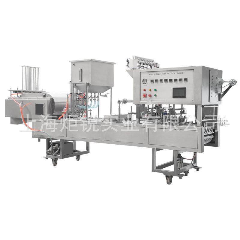 全自动灌装封杯机流水线酸奶鸭血火锅底料酱料灌装封口一体包装机