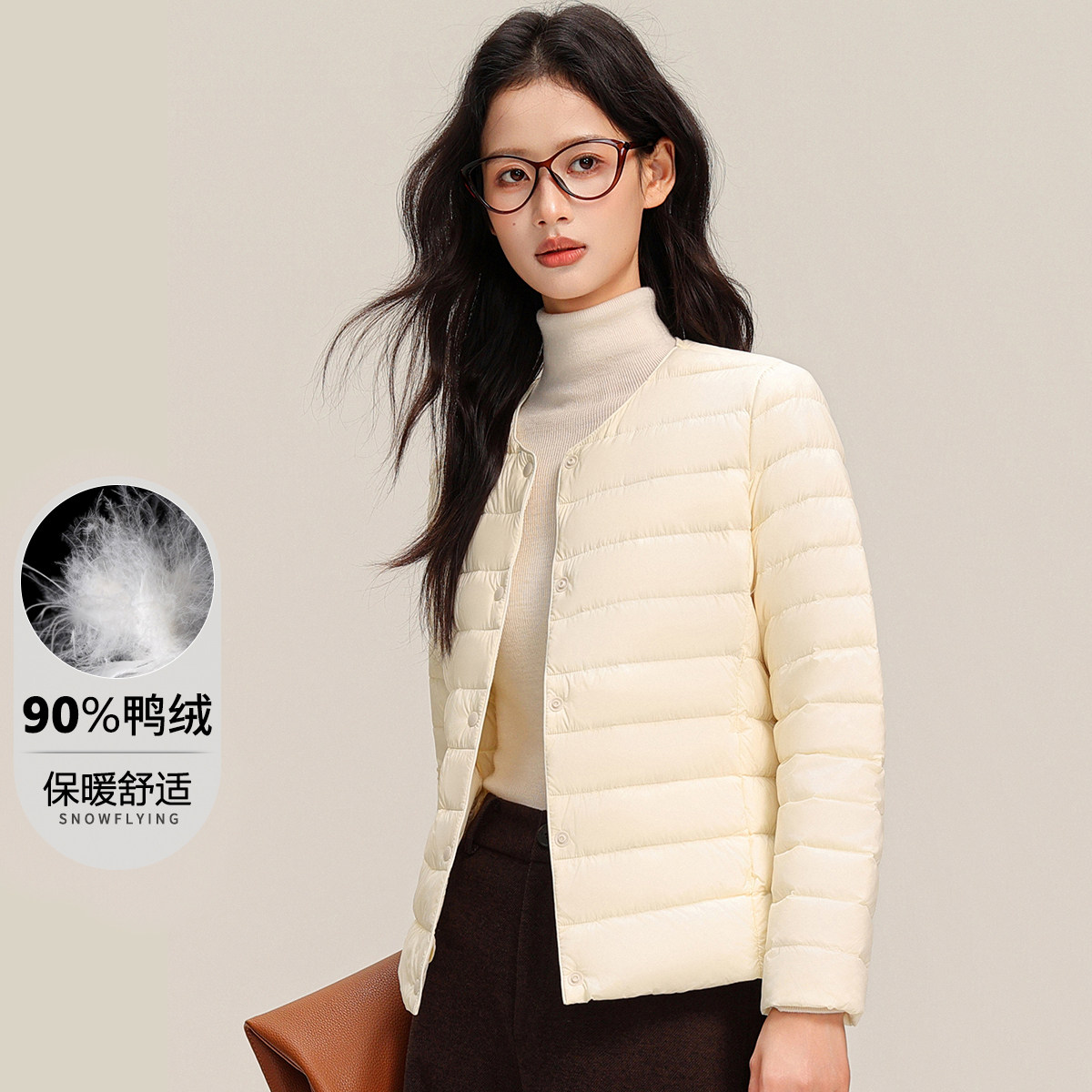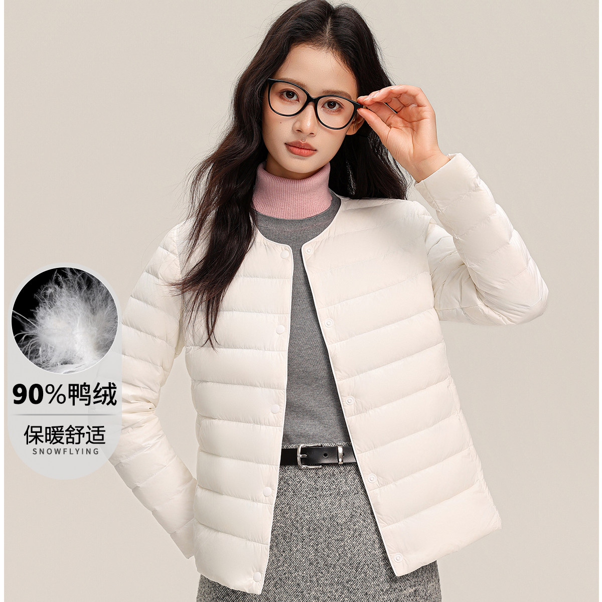 雪中飞25秋新款女士短款轻薄羽绒服内胆圆领纯色简约百搭舒适W