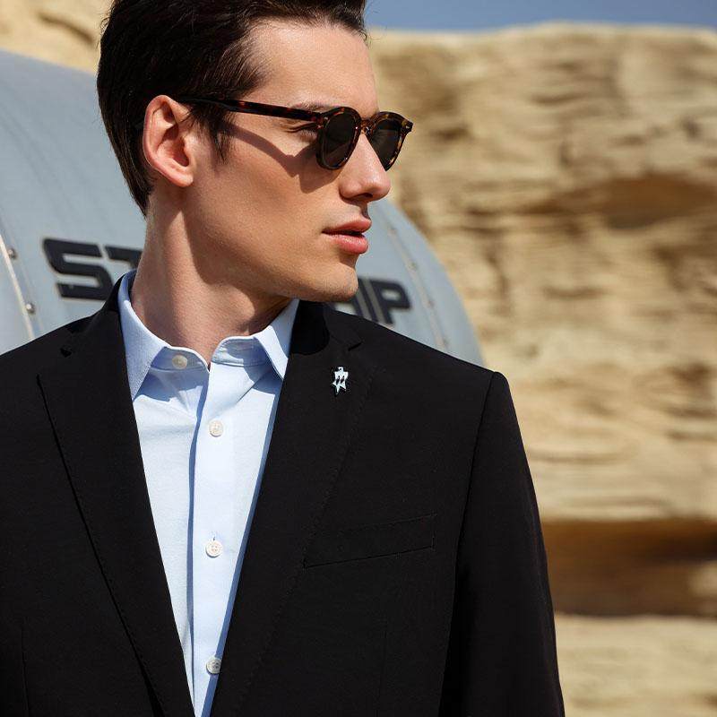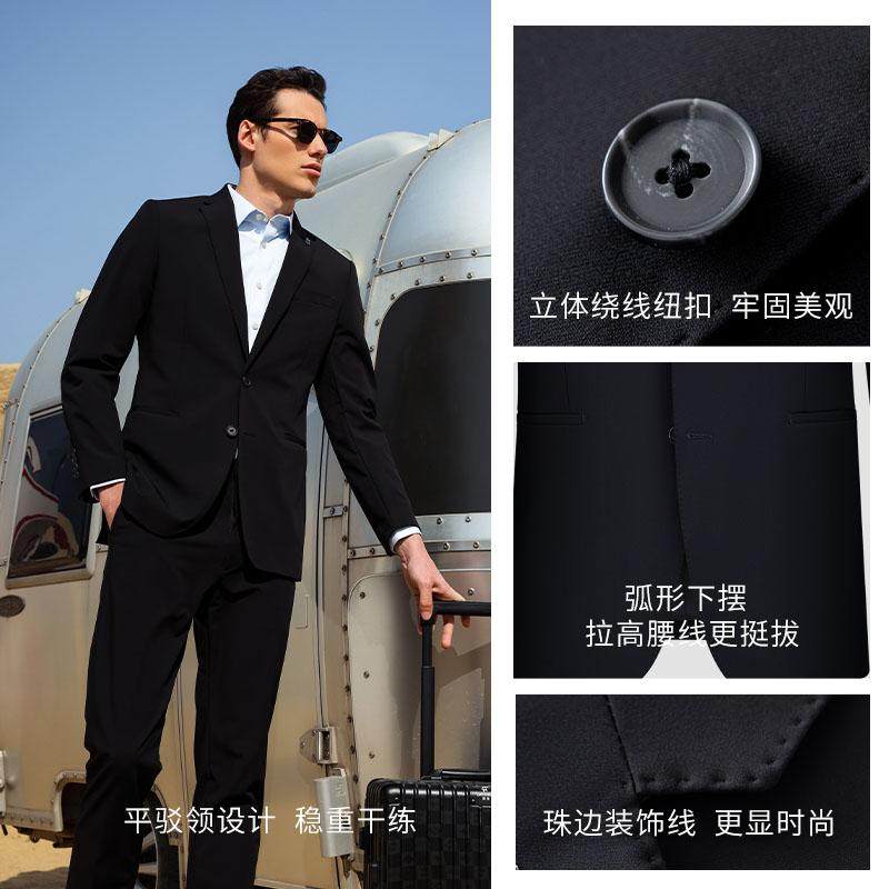 欧定头等舱西服套装男士新款钛黑高级定制商务休闲男装西装两件套