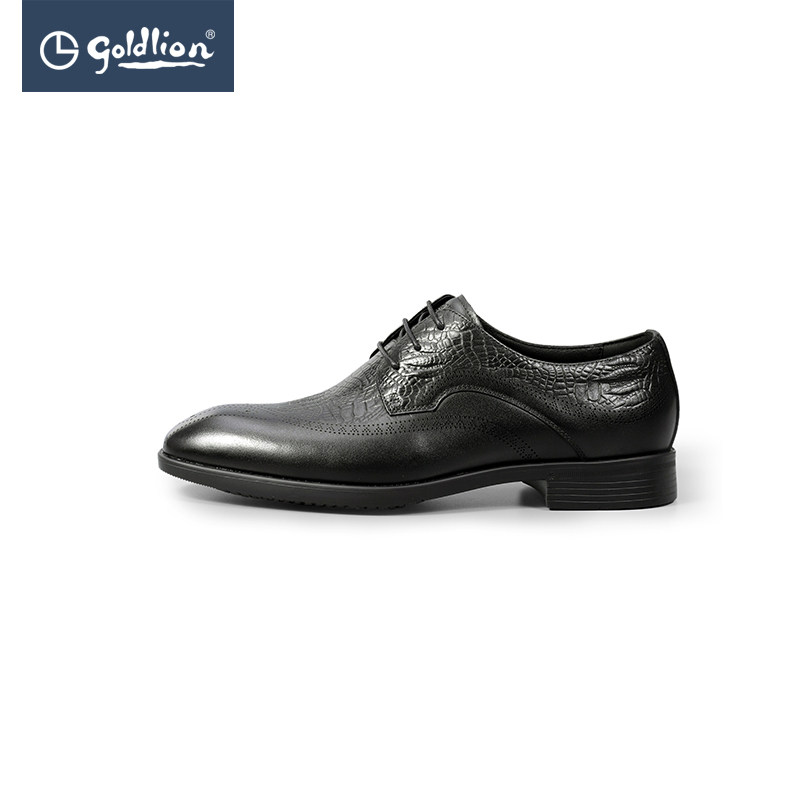 金利来男士皮鞋商务英伦压纹真皮系带结婚鞋都市透气轻便德比鞋