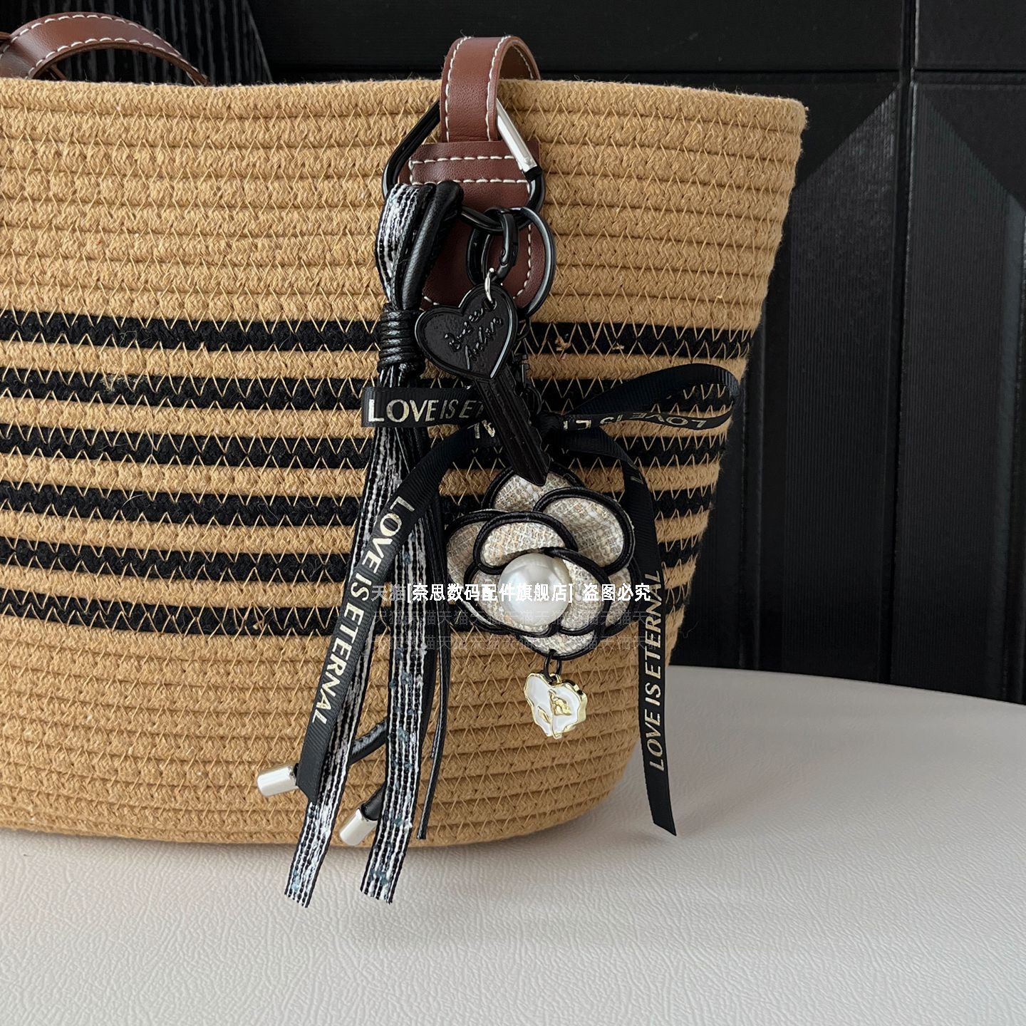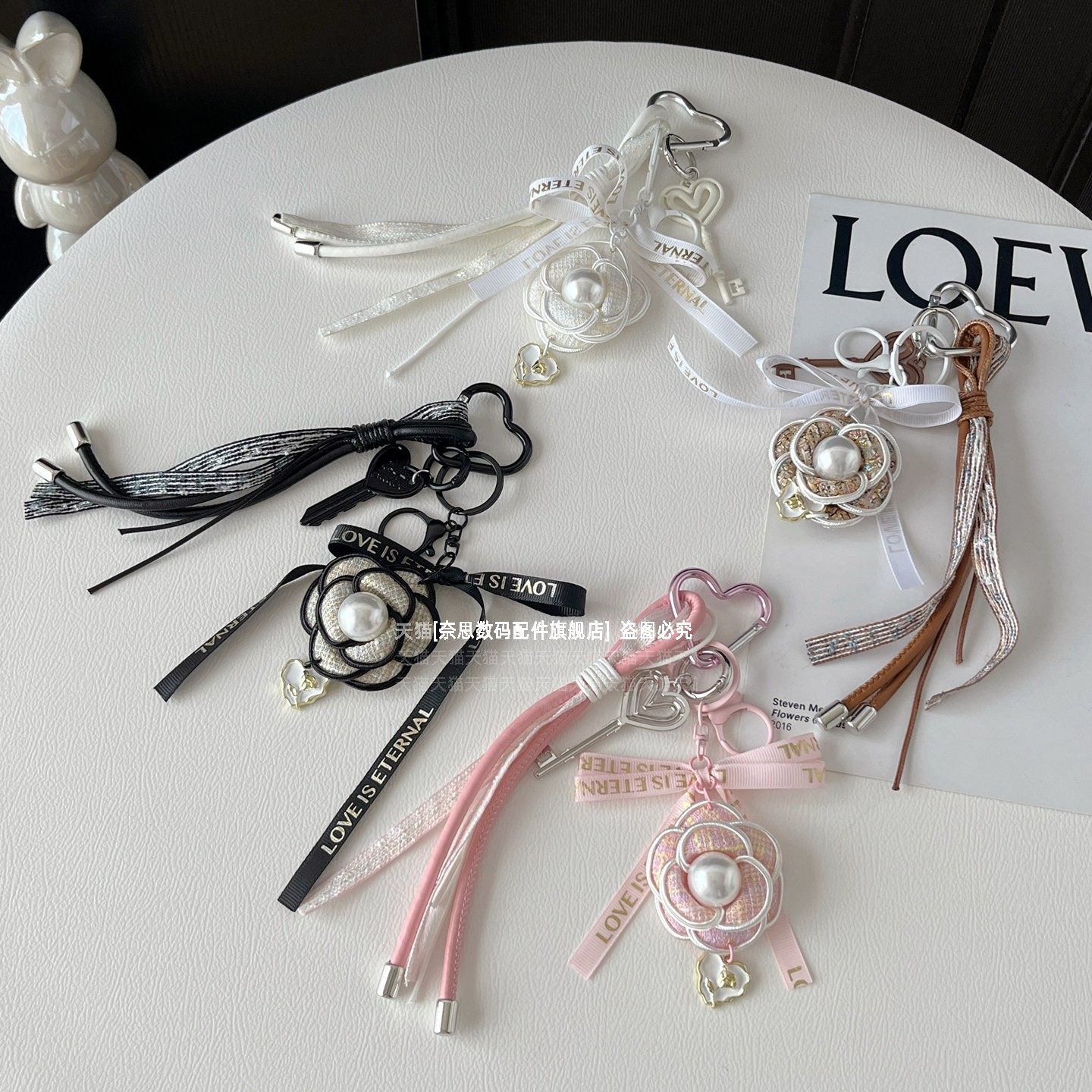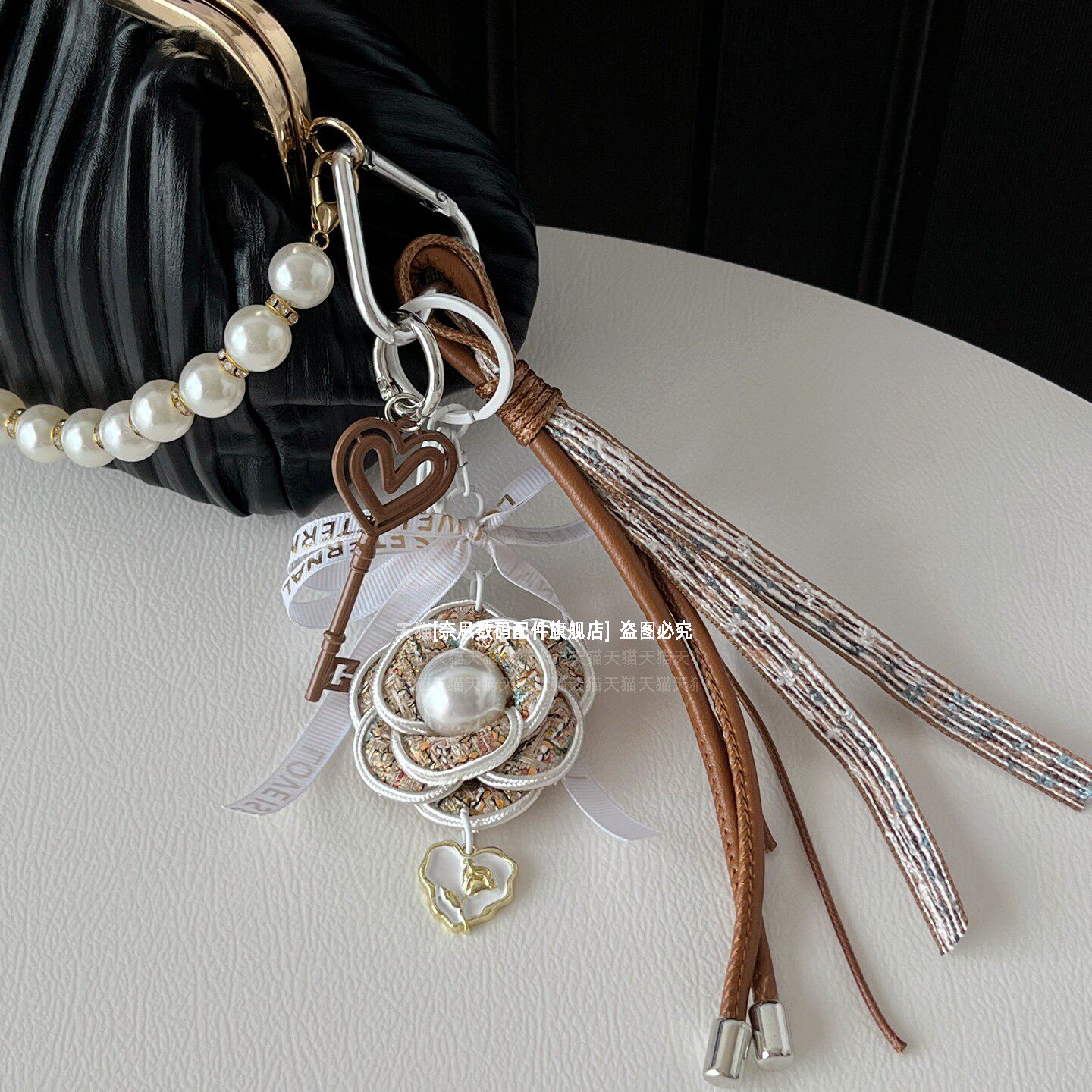 小香风山茶花包包挂件原创diy手工挂链挂绳轻奢高级感斜挎包配饰通用汽车钥匙扣挂饰吊坠短款配饰链防丢精致