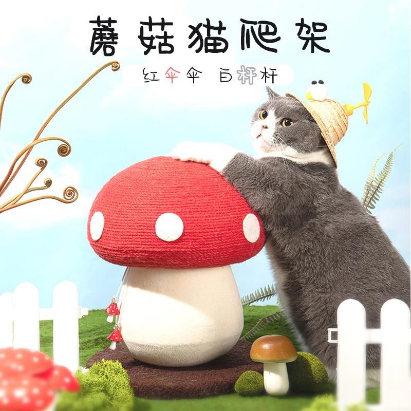 蘑菇猫抓板剑麻立式猫抓柱不掉屑磨爪猫咪解闷红伞伞猫爬架猫玩具