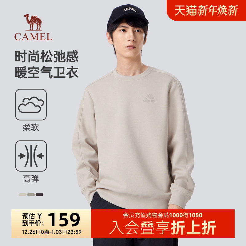 骆驼卫衣男秋冬2025新款情侣纯色套头美式宽松休闲圆领长袖t恤
