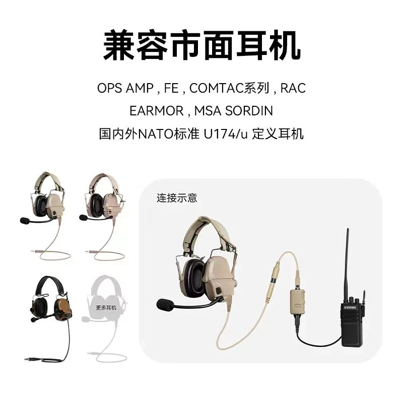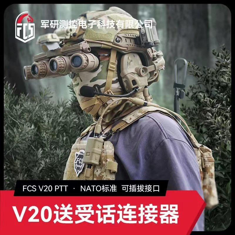 FCS V20 战术通信耳机单通道PTT兼容 PRC148 152对讲机下出线多选