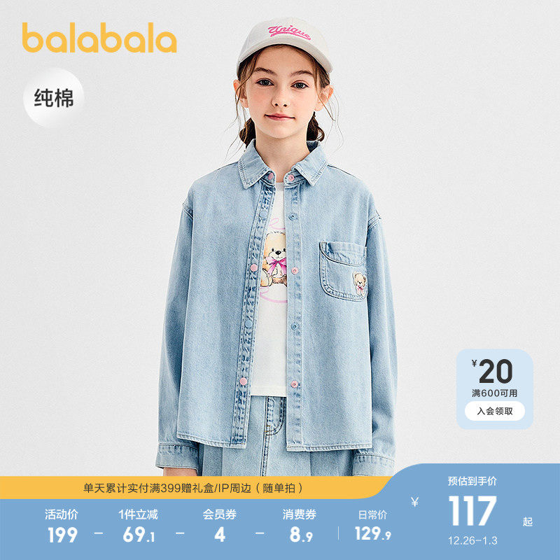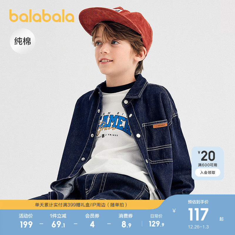 【商场同款】巴拉巴拉男童衬衫儿童长袖2025新款秋牛仔衫宽松休闲