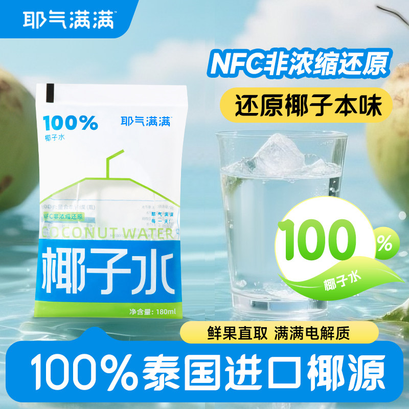 耶气满满椰子水电解质水饮料孕妇可喝袋装椰汁水椰子汁180g整箱