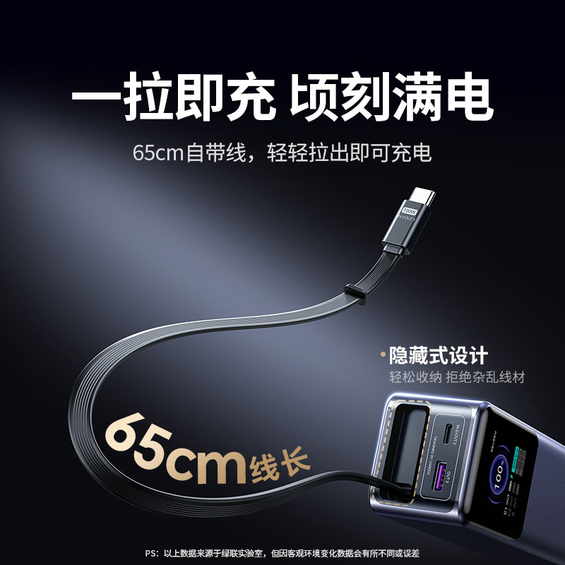 【3C认证可上飞机】脑洞范充电宝自带伸缩线2026新款10000毫安大容量便携式卷尺移动电源适用苹果17华为16pm