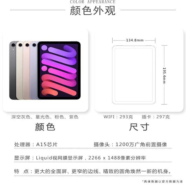 Apple/苹果 iPad mini6 迷你mini5代 全面屏 8.3英寸 蜂窝版5G