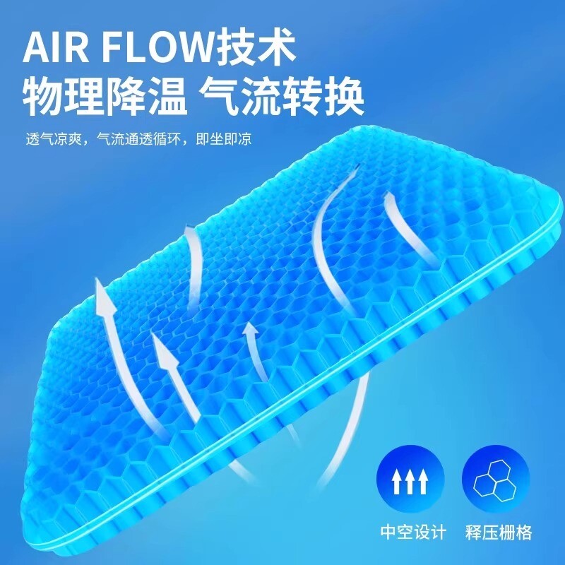 汽车坐垫单片夏季蜂窝凝胶冰丝通用办公座垫硅胶冰凉透气货车屁垫