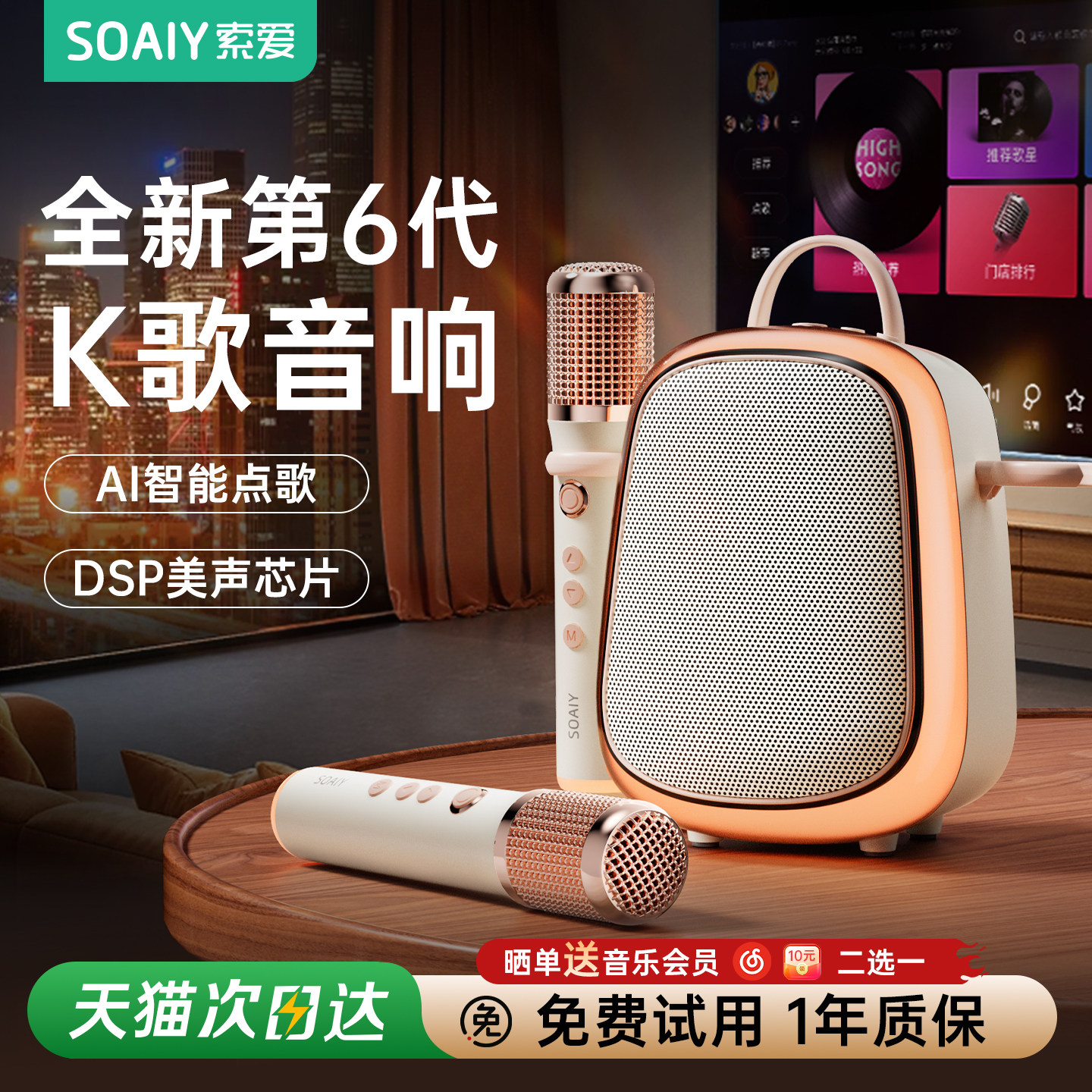 索爱MINIKTV6音响K歌麦克风话筒一体家用儿童唱歌机卡拉OK音箱