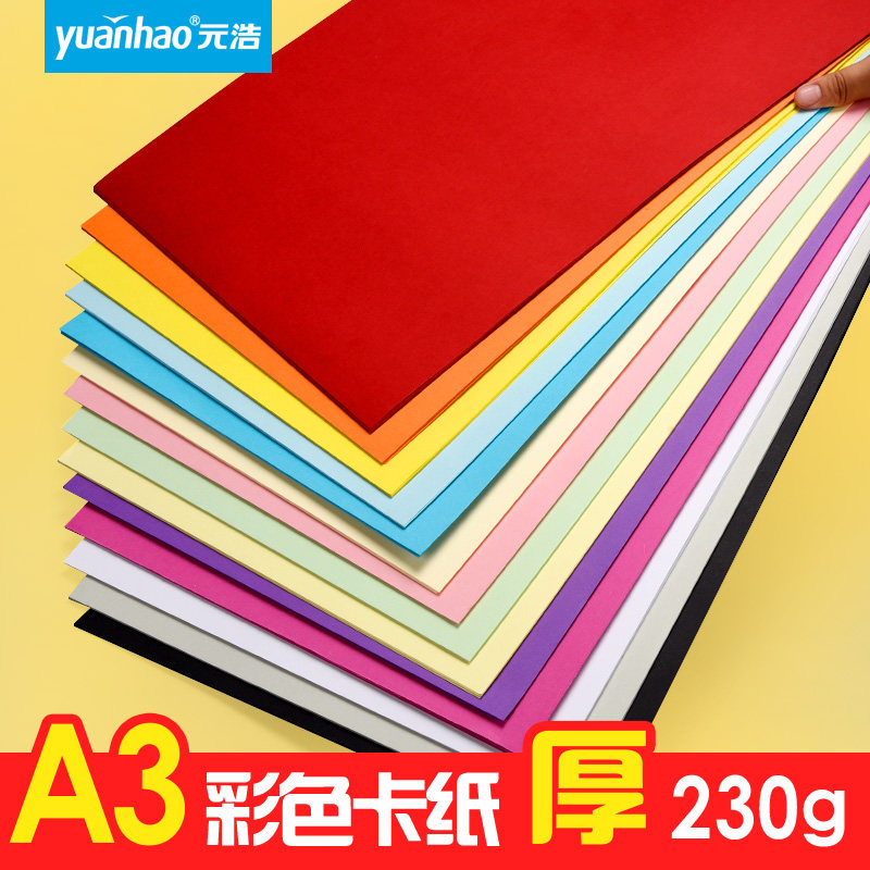 元浩A3彩色硬卡纸厚幼儿园学生儿童手工画画美术彩纸大张白/黑/蓝/绿/粉/黄/红多色裱画框贺卡纸diy模型230g