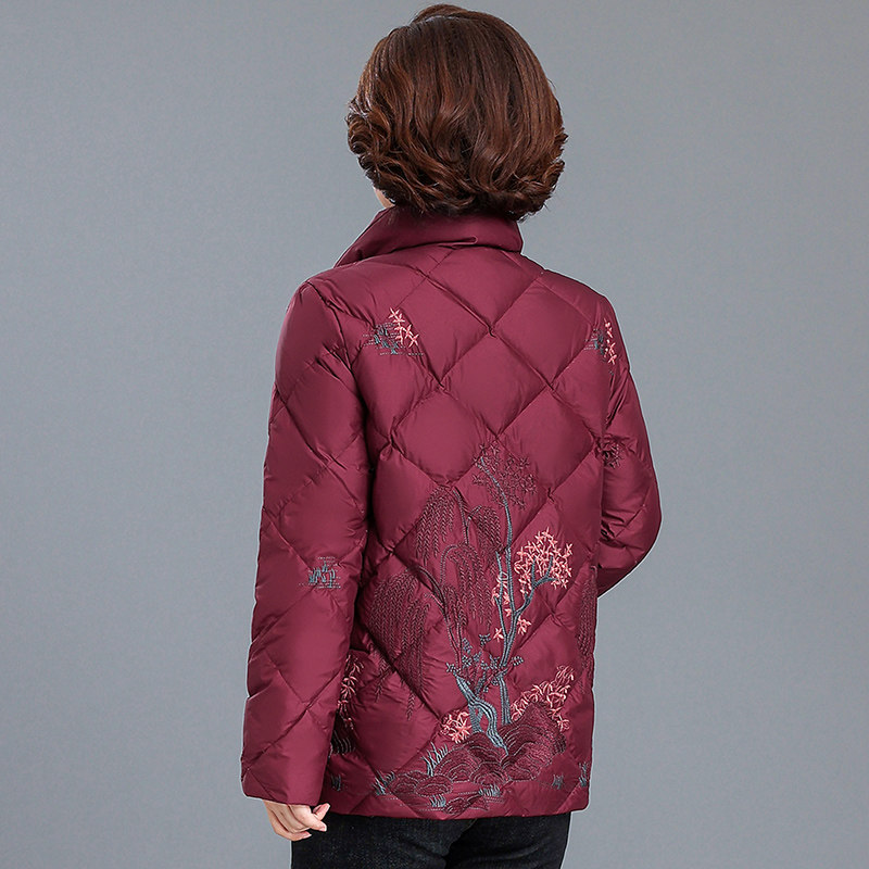 户外中老年妈妈羽绒服女短款2023新款冬装大码奶奶唐装老年人秋冬