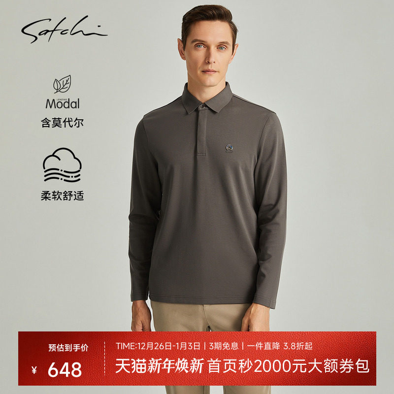 [莫代尔]SATCHI沙驰男装男士长袖POLO衫秋季新款商务打底T恤衫男