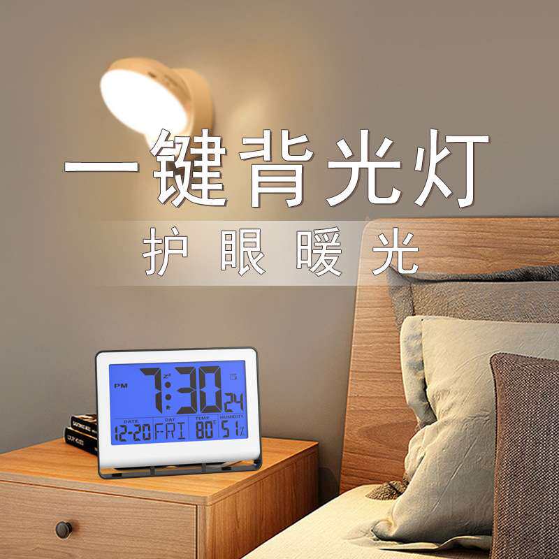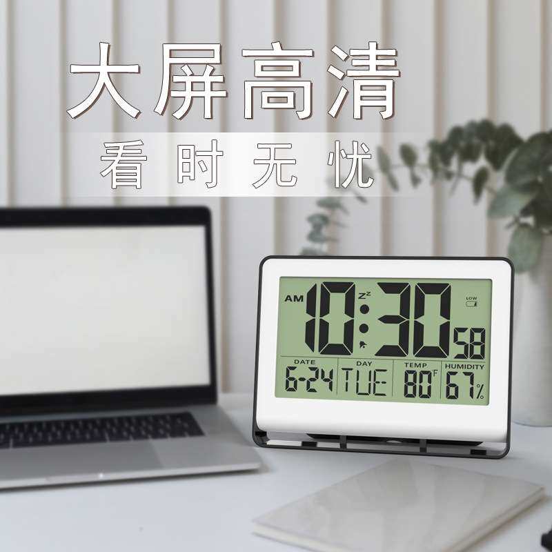 创意简约挂钟静音台式壁挂万年历电子钟老年温湿度闹钟台钟大屏幕