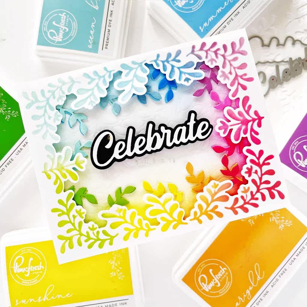 Pink Fresh甜蜜树叶遮蔽板 卡片背景套印套装Sweet Leaves